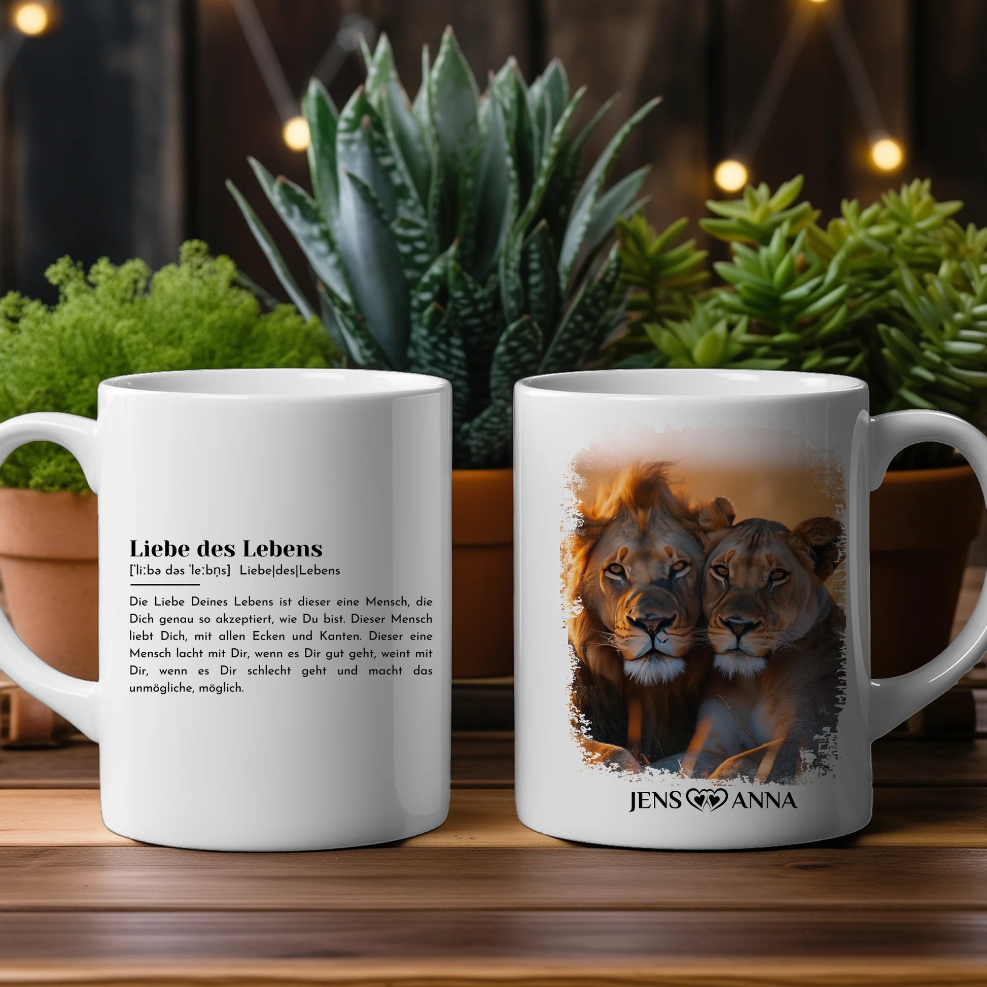 Pärchen Tasse Personalisiert Definition Liebe des Lebens Löwen Bild