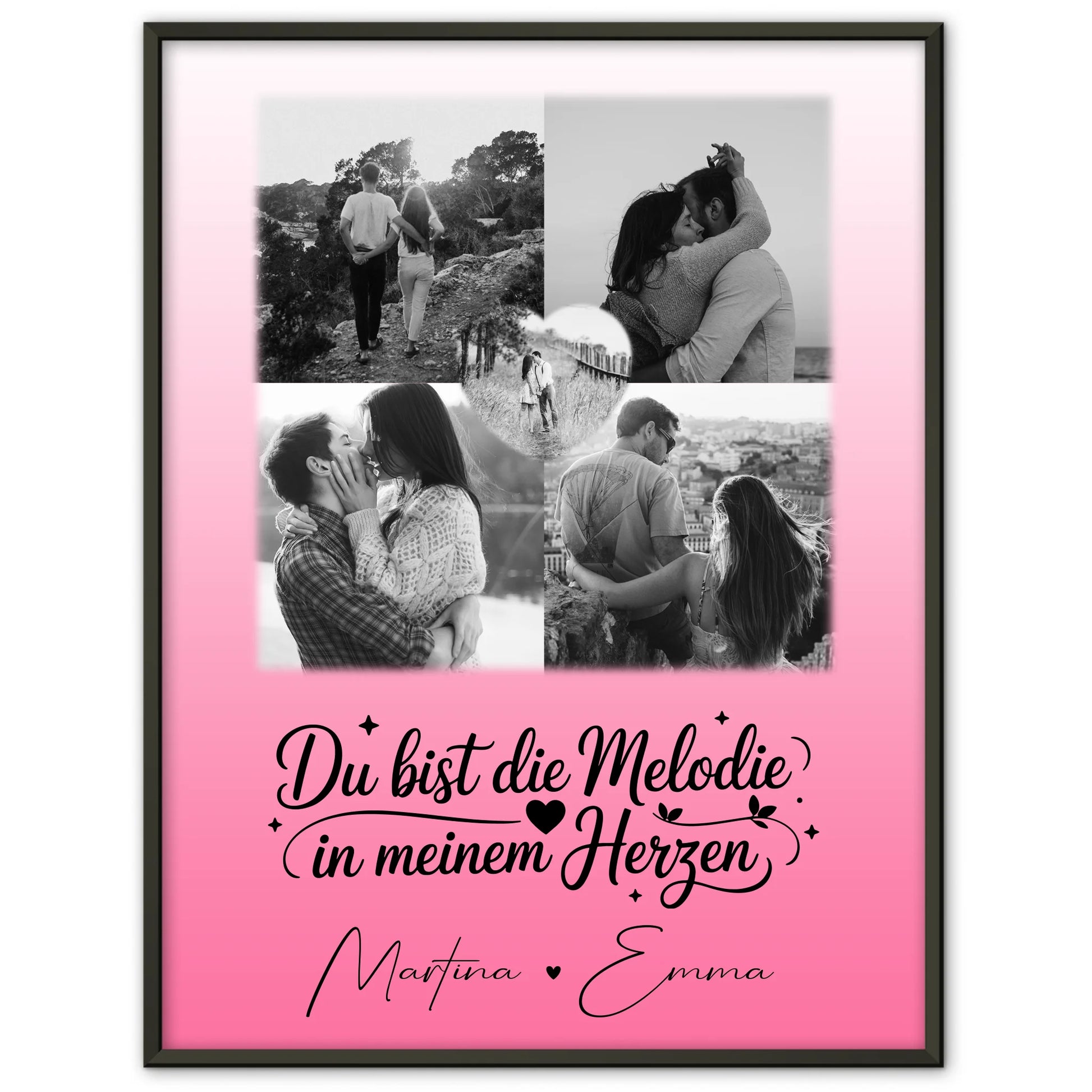 Partner Poster Personalisiert mit 4 Fotos und 1 Herz Foto – Die Melodie in meinem Herzen als einzigartiges Geschenk