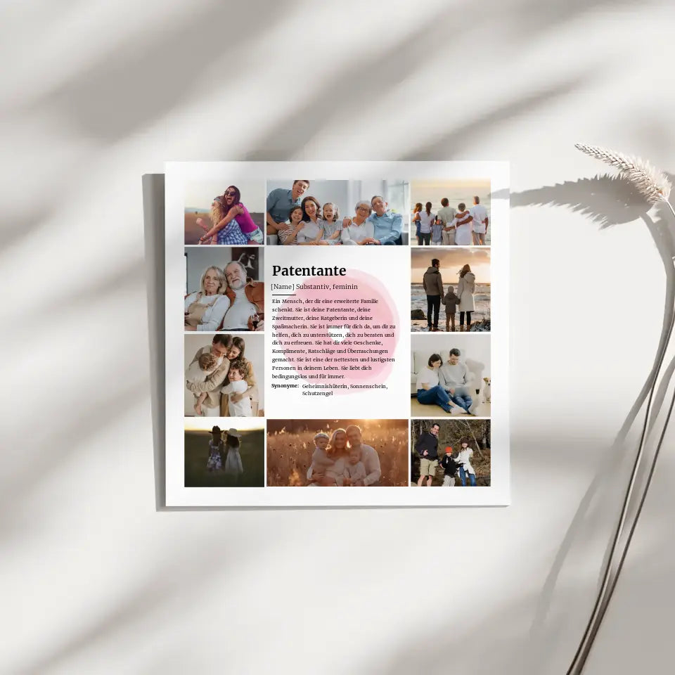 Du möchtest etwas einzigartiges verschenken? Dann ist Unser Patentante Definition Fotoboard magnetisch mit 10 Fotos ein einzigartiges personalisiertes Geschenk.