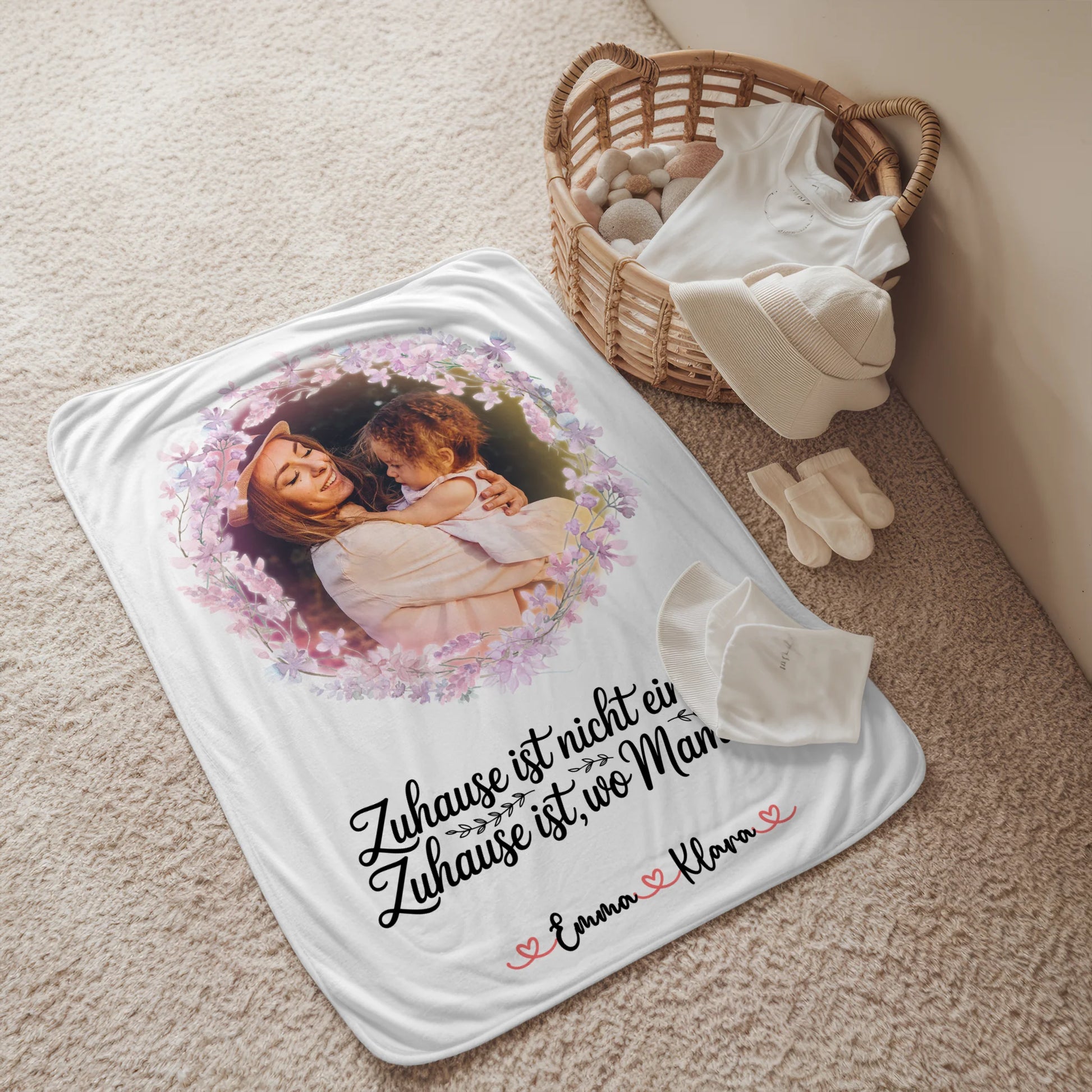 Personalisierbare Decke Mama mit Foto, Namen und Wunschtext - Zuhause ist wo Mama ist