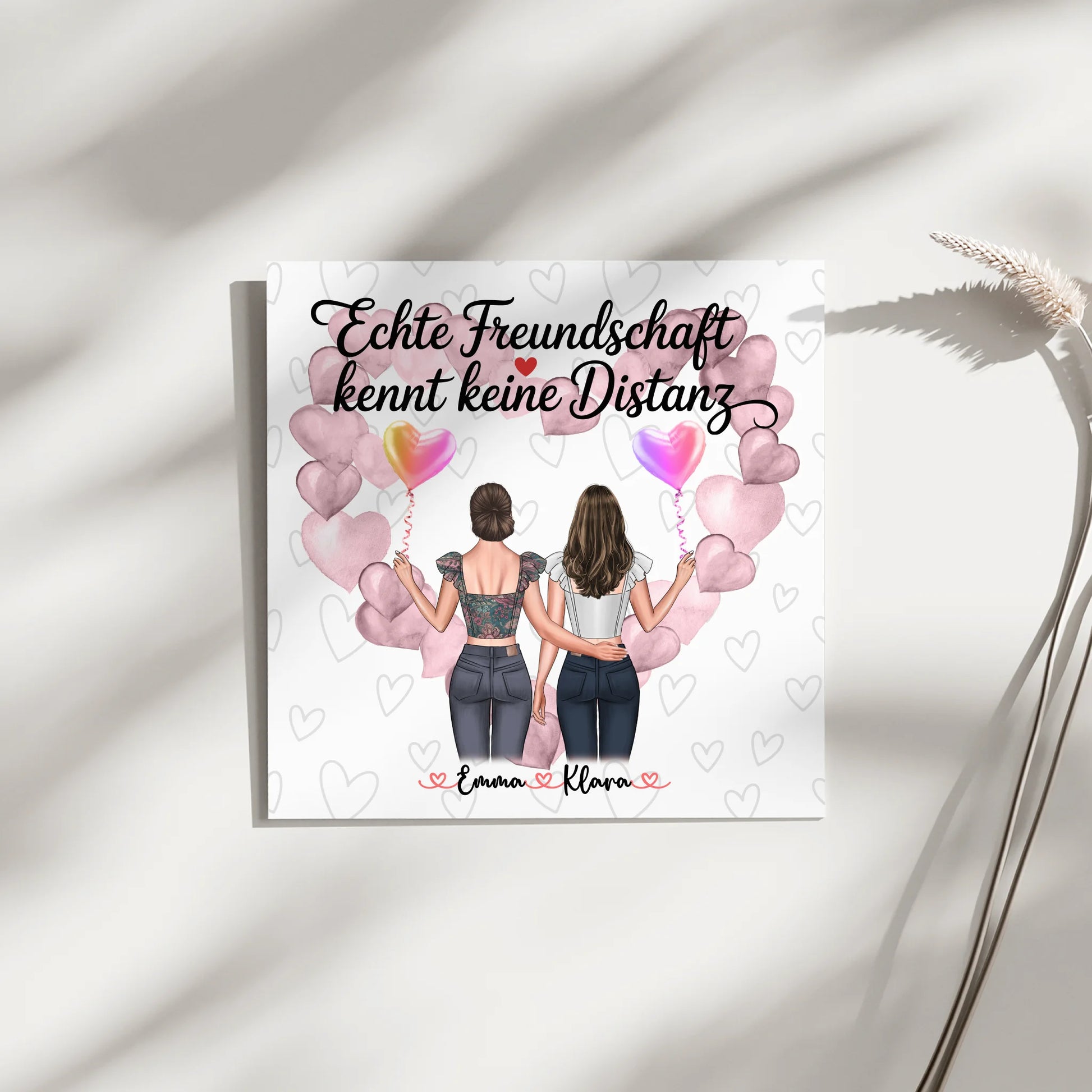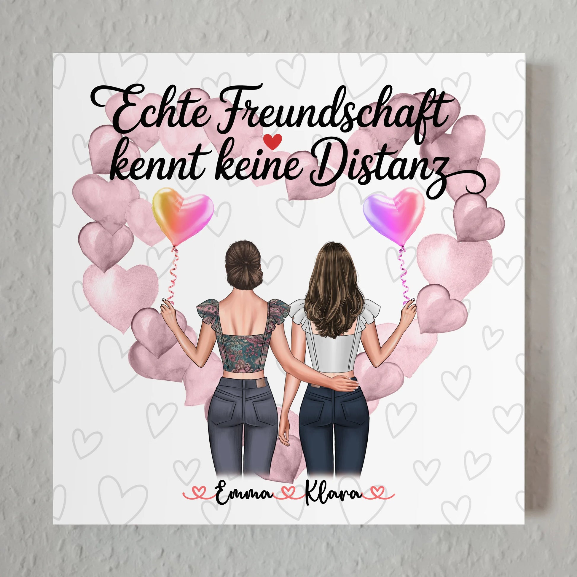 Entdecke das personalisierbare Fotoboard beste Freundin mit 2 Clipart Frauen, Namen & Wunschtext als liebevolles Geschenk zum Geburtstag für deine beste Freundin. Das Fotoboard verbindet persönliche Elemente wie Namen, Cliparts und einen Wunschtext mit dem schönen Spruch Echte Freundschaft kennt keine Distanz und schafft so ein emotionales Erinnerungsstück, das lange Freude bereitet.