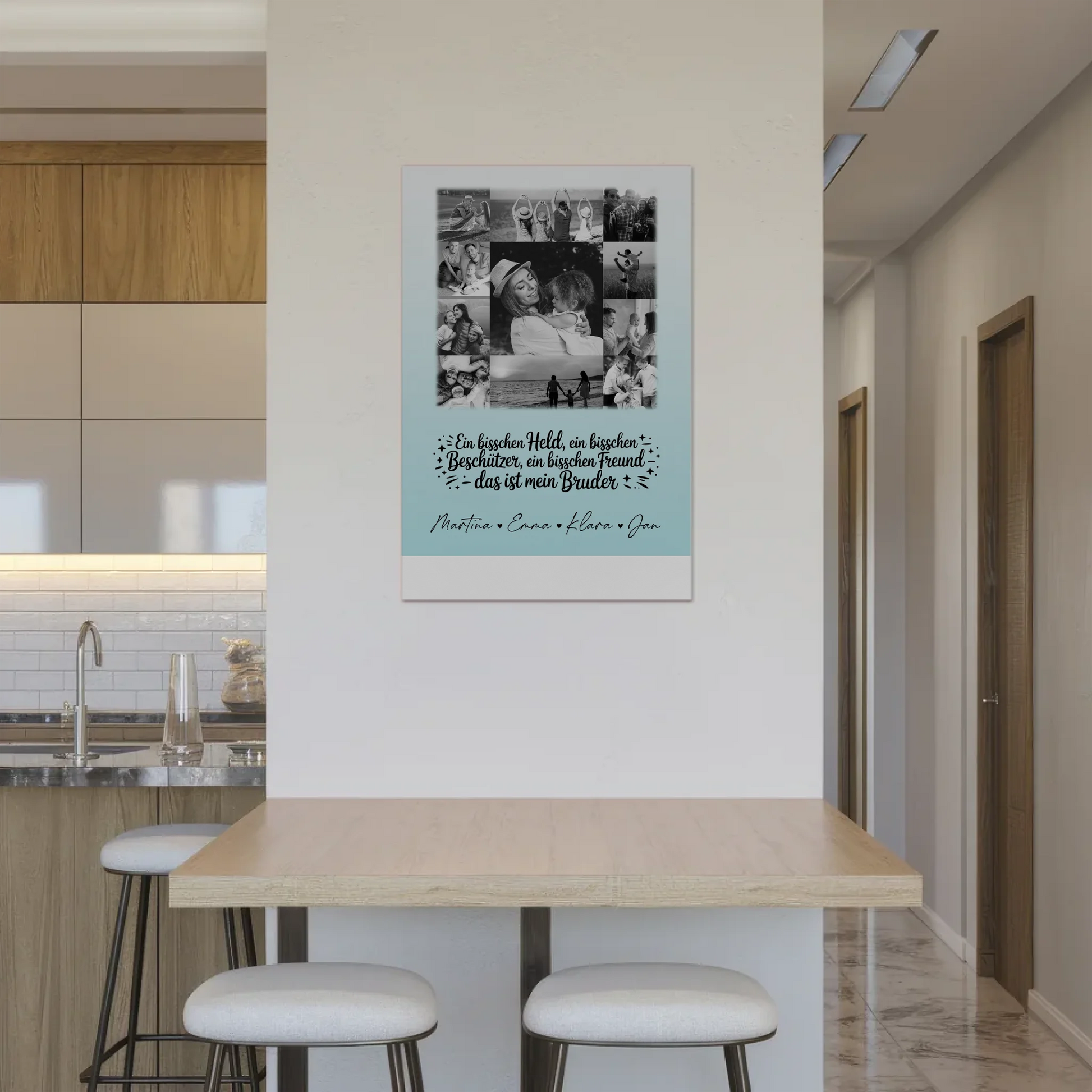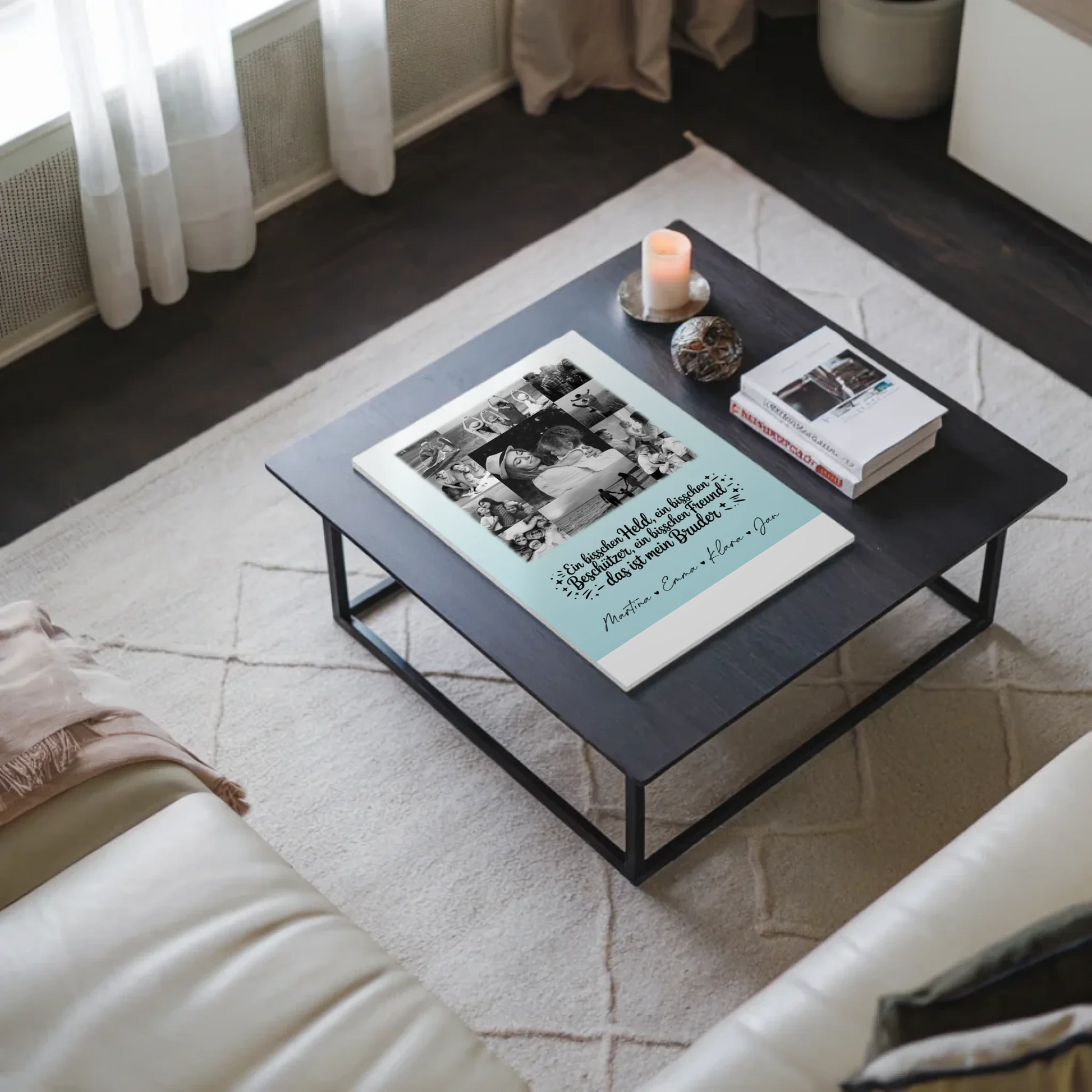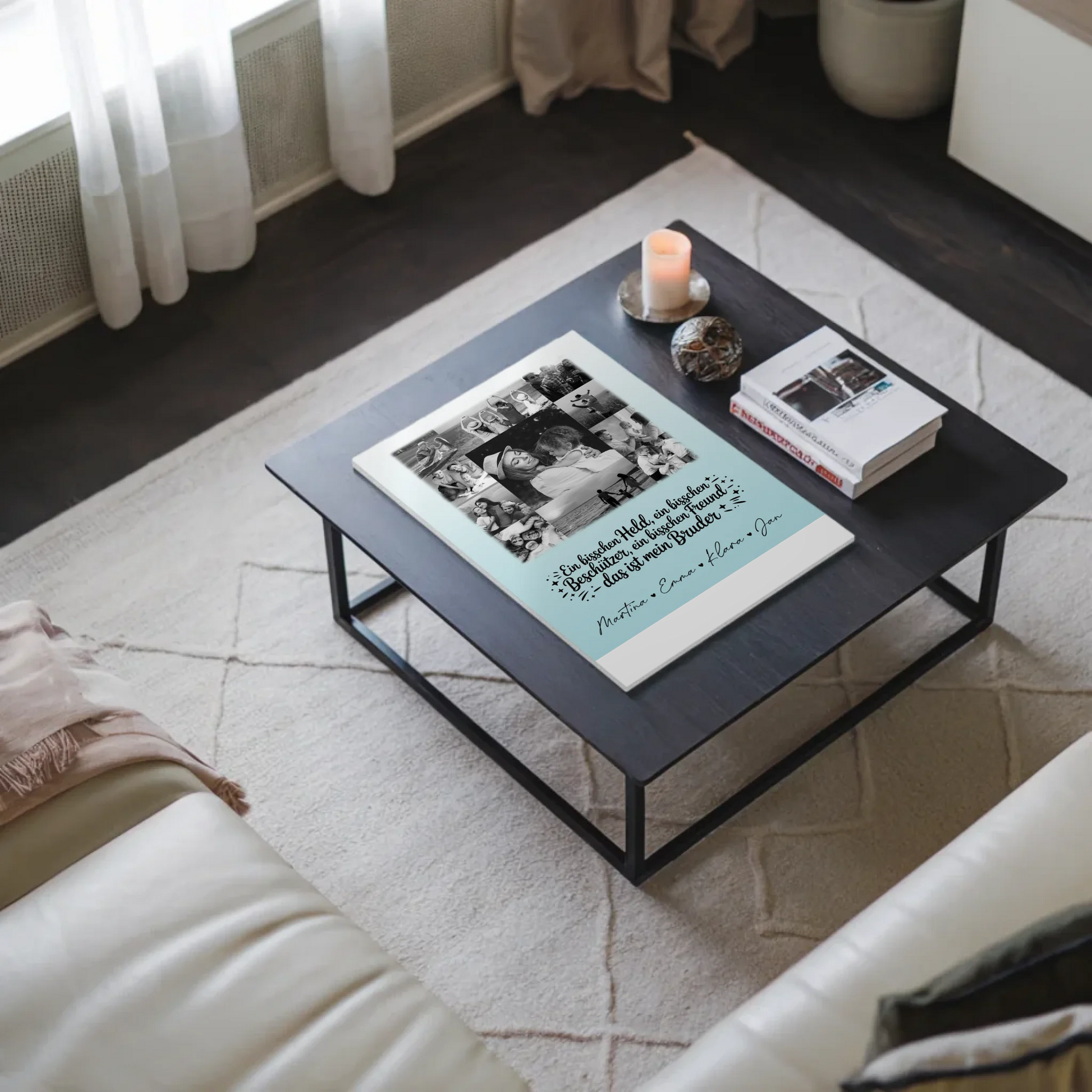 Personalisierbares Fotoboard Magnet Wandbild mit 11 Fotos Held Beschützer Freund mein Bruder Schwarz-Weiß