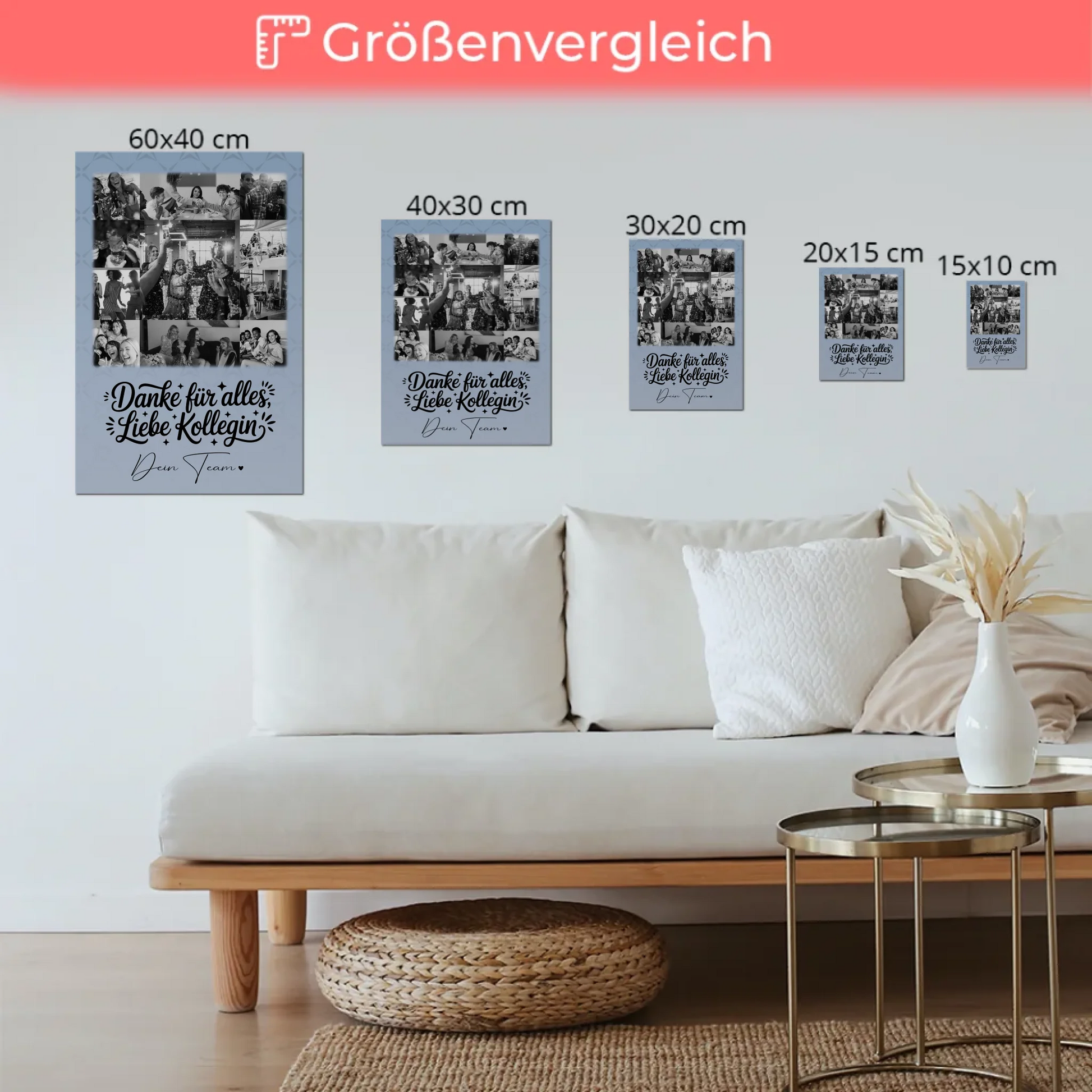 Suchst du nach einem einzigartigen und persönlichen Geschenk, das deine Wertschätzung zeigt? Das Personalisierbares Magnetposter Fotoboard mit 11 Fotos Life is better with you in it ist die ideale Wahl! Dieses individuell gestaltbare Poster bietet dir die Möglichkeit, 11 deiner schönsten Fotos, einen eigenen Spruch oder Wunschtext sowie Namen zu integrieren. Es ist perfekt geeignet, um deiner Kollegin zum Abschied eine besondere Erinnerung zu schenken. Das Design mit dem inspirierenden Spruch Life is better with you in it macht dieses Magnetposter zu einem emotionalen Highlight. Ob als Abschiedsgeschenk bei der Verabschiedung im Büro – dieses personalisierte Fotoboard wird garantiert für Freude sorgen. Gestalte jetzt dein einzigartiges Geschenk, das lange in Erinnerung bleibt, und zeige deiner Kollegin, wie sehr du ihre Zeit und Zusammenarbeit schätzt!