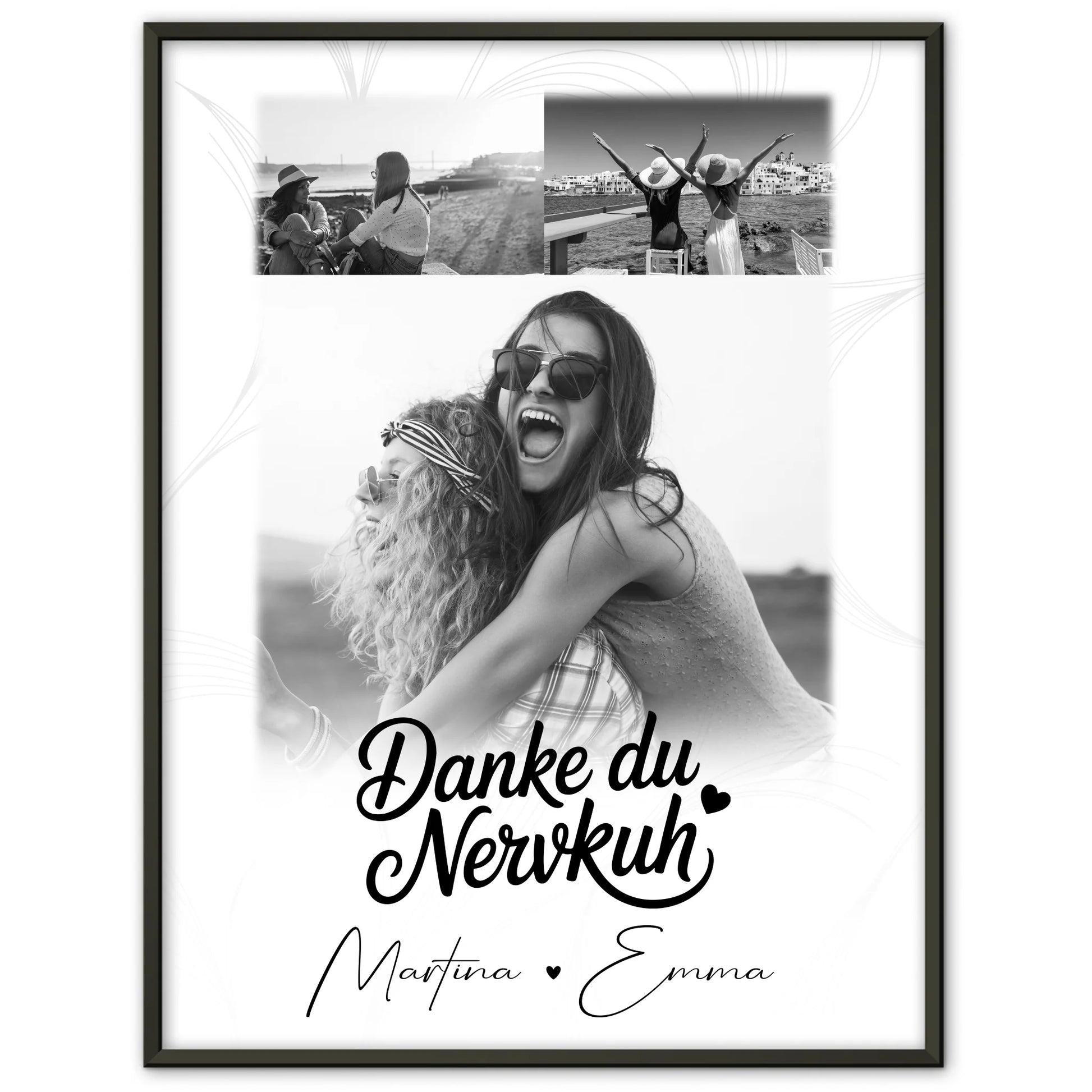 Personalisierbares Poster beste Freundin Geschenk mit 3 Fotos Danke du Nervkuh
