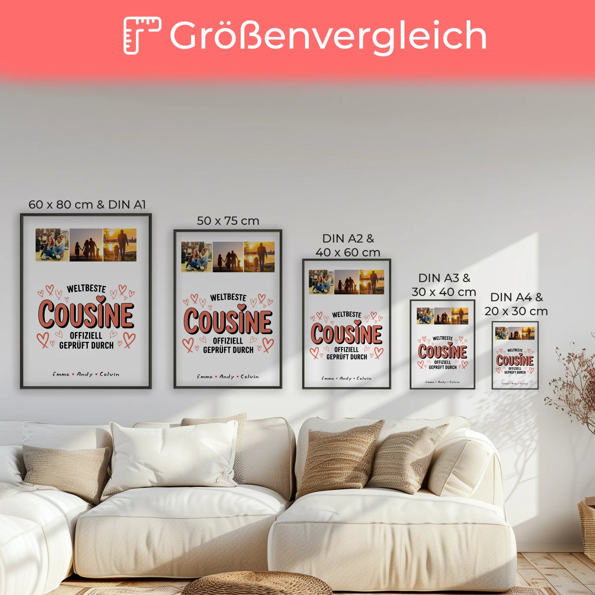 Personalisierbares Poster Cousine Fotocollage Weltbeste Cousine Offiziell Geprüft Durch - Das perfekte Geschenk für deine Cousine