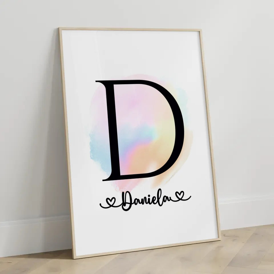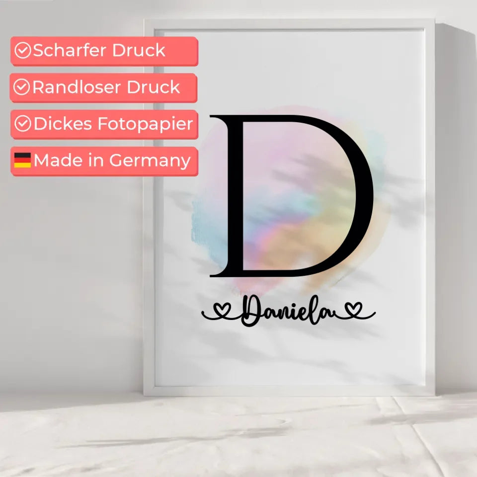 Suchst du ein ganz besonderes Geschenk? Unser personalisierbares Poster mit Anfangsbuchstaben D als Farbtupfer A-Z ist die perfekte Wahl! Du kannst das Poster individuell gestalten, indem du den Initial Buchstaben, den Namen und das Hintergrundbild wählst. Ob zum Geburtstag, zu Weihnachten oder einfach nur so - dieses Poster ist ein einzigartiges Geschenk, das Freude bereitet und in jedem Raum zum Blickfang wird. Die Gestaltungsmöglichkeiten sind nahezu endlos, denn du kannst den Buchstaben A-Z auswählen und so ein ganz persönliches Kunstwerk schaffen, das den Charakter des Beschenkten widerspiegelt. Lass deiner Kreativität freien Lauf und setze mit unserem Poster ein stilvolles Statement. Schaffe unvergessliche Erinnerungen mit einem individuellen Farbtupfer, der jedes Ambiente aufhellt!