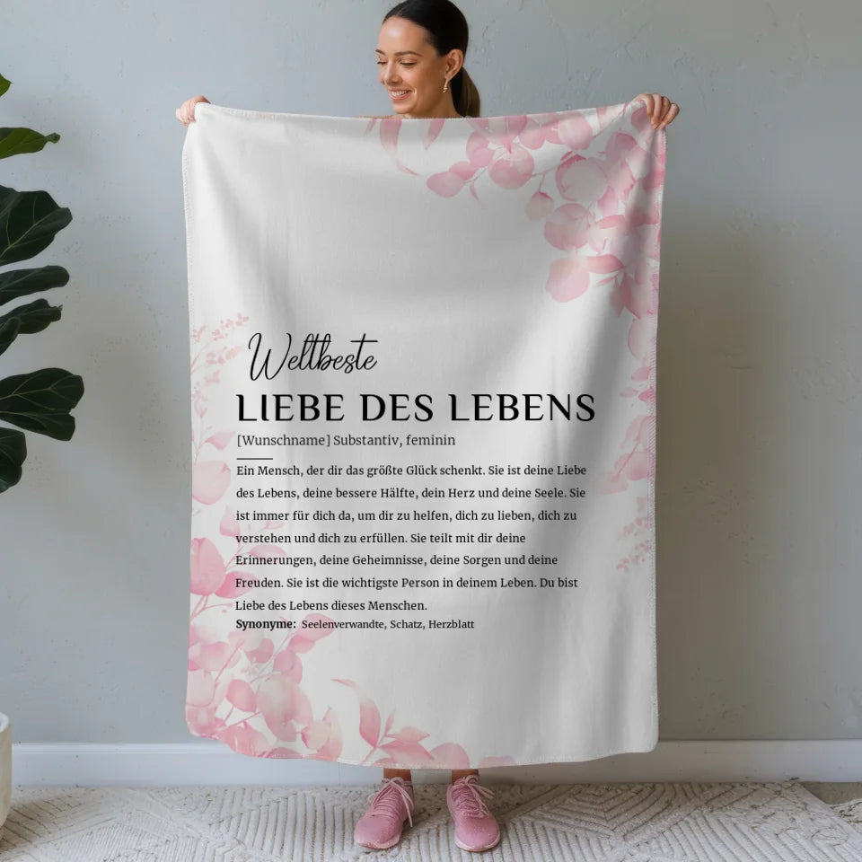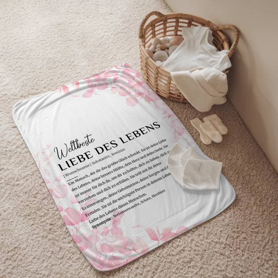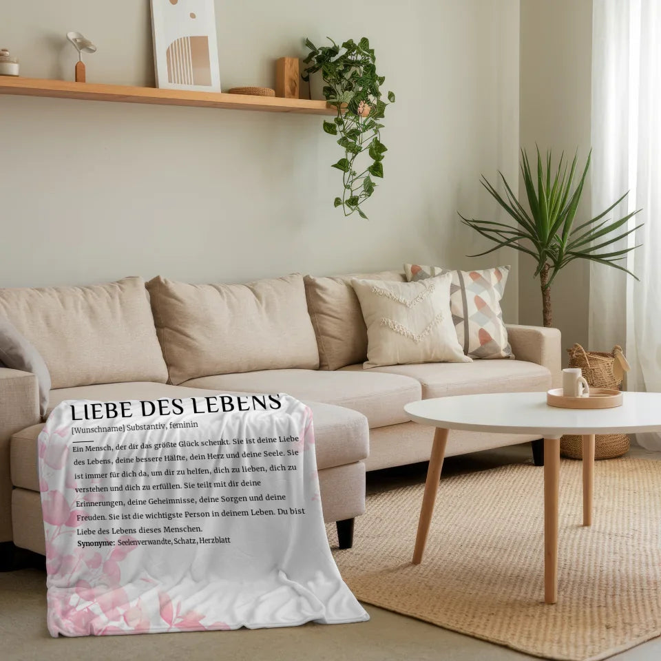 Personalisiert Decke Definition Liebe des Lebens Rosa Floral mit Name