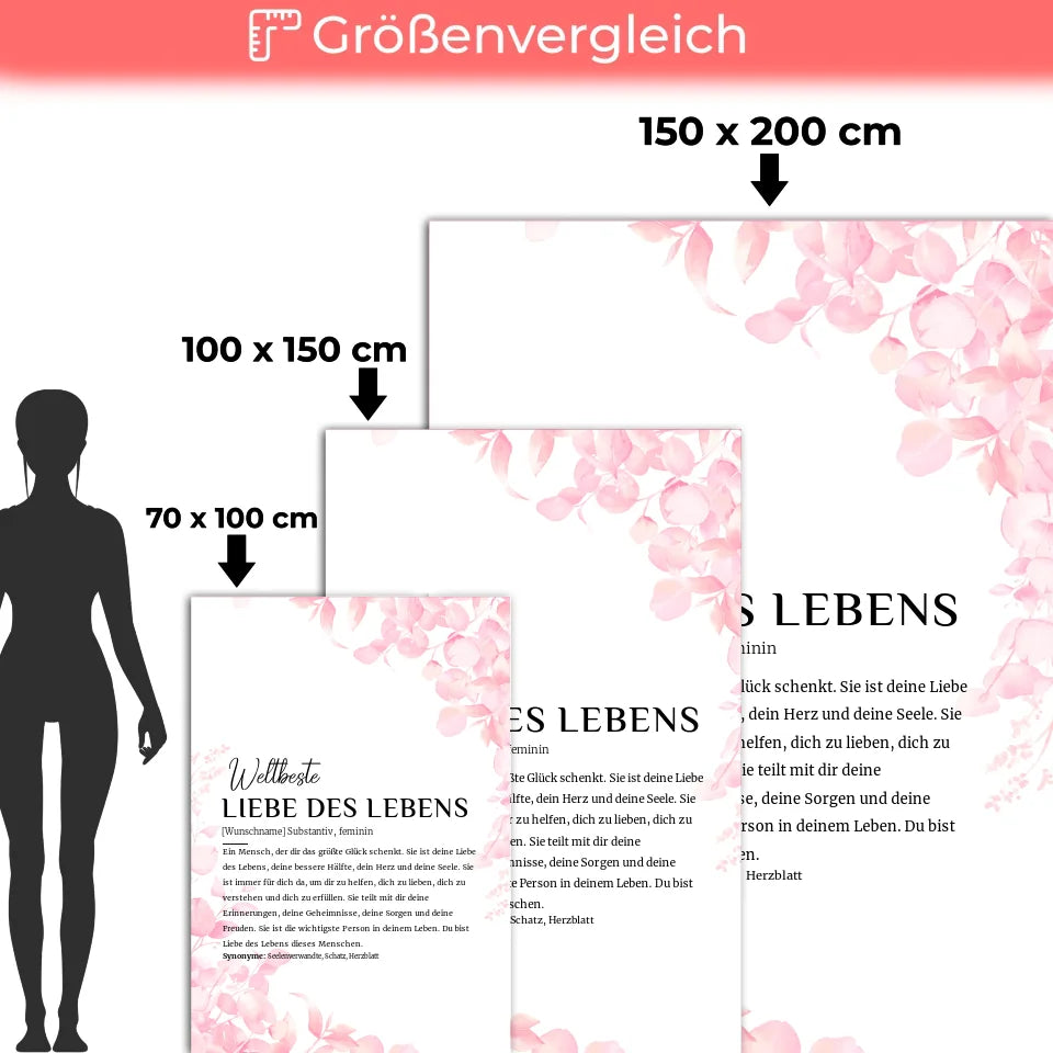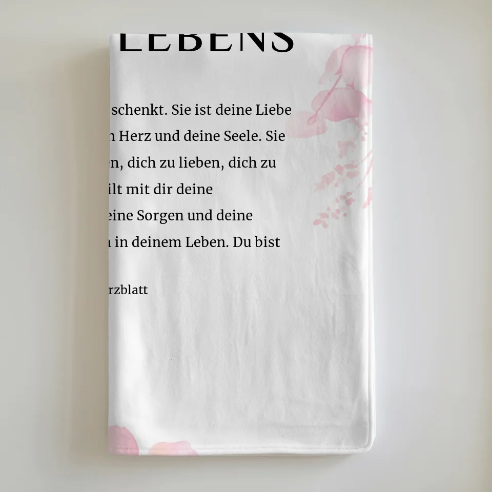 Entdecke die perfekte Möglichkeit, Liebe und Wärme auszudrücken mit unserer Personalisiert Decke Definition Liebe des Lebens Rosa Floral mit Name. Diese einzigartige Decke ist nicht nur ein praktisches Accessoire, sondern auch ein ganz persönliches Geschenk, das Herzen höherschlagen lässt. Individuell anpassbar, kannst Du sowohl den Namen Deines Lieblings als auch das Hintergrundbild wählen, um ein ganz besonderes Unikat zu schaffen.