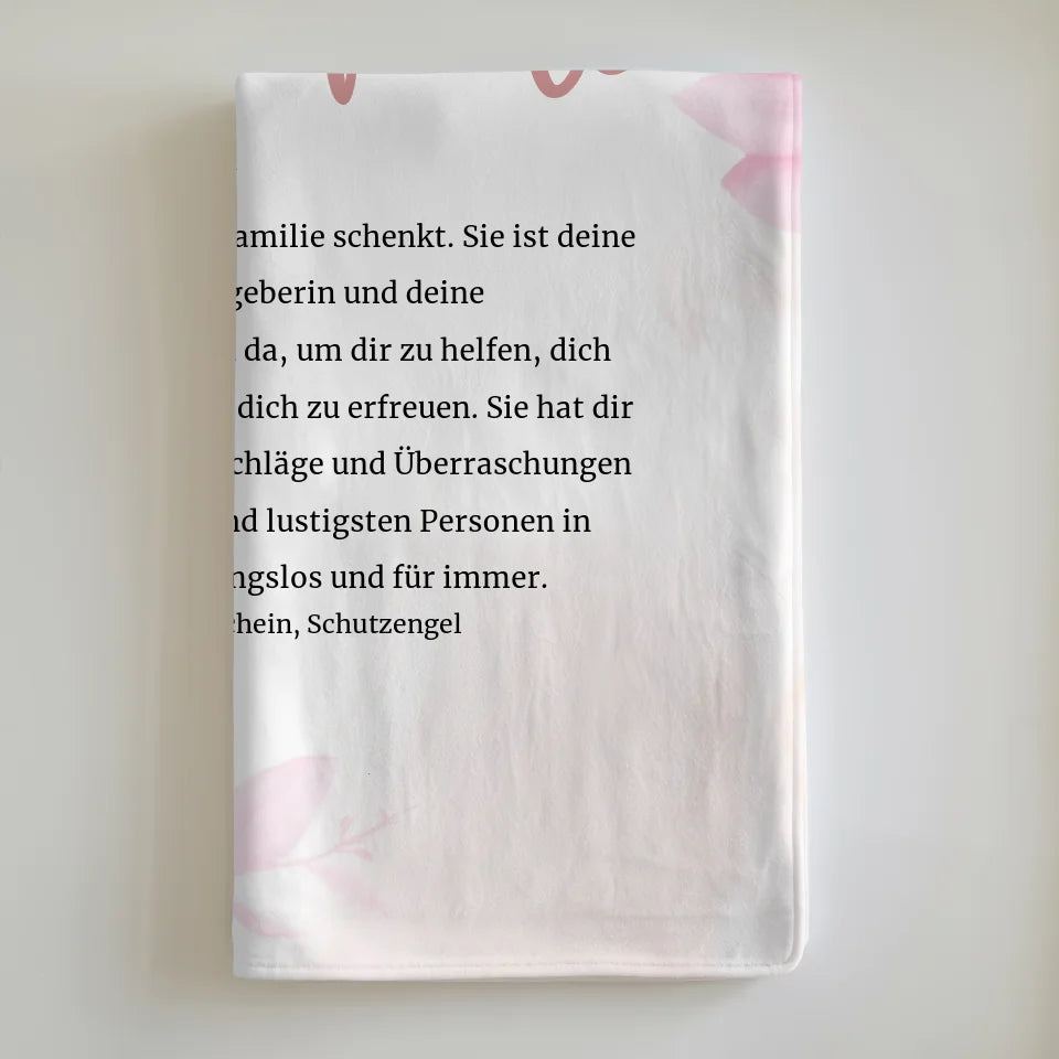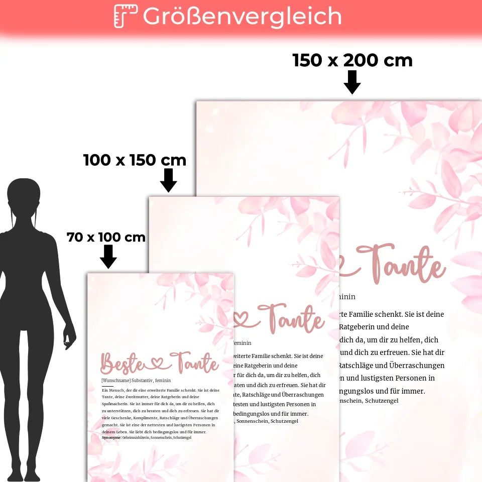Entdecke die personalisiert Decke mit Name Definition Beste Tante Herz, die mit viel Liebe für die beste Tante gestaltet wurde! Diese einzigartige Decke ist nicht nur ein wunderbares Accessoire für das Zuhause, sondern auch ein persönliches Geschenk, das von Herzen kommt. Du kannst die Decke mit dem Namen deiner Tante und einem individuellen Hintergrundbild verschönern. Ideal für besondere Anlässe wie Geburtstag oder Weihnachten, zaubert diese Decke ein Lächeln auf ihr Gesicht und sorgt für wohlige Wärme und Geborgenheit.