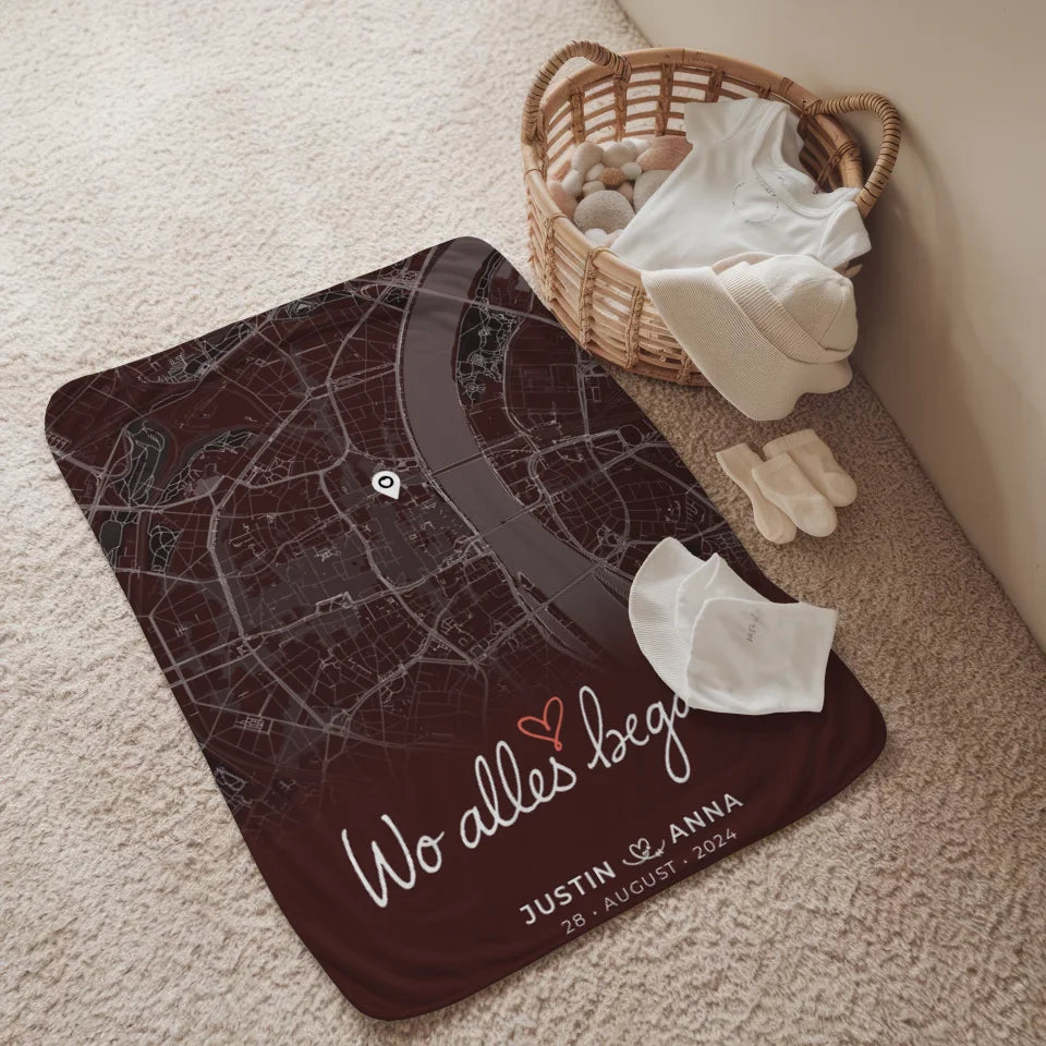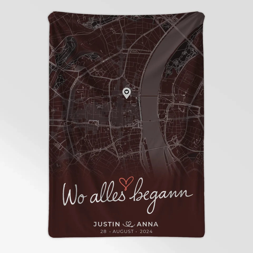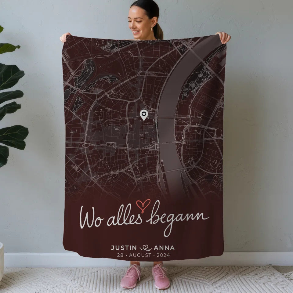 Personalisiert Decke Paare Stadtkarte Wo Alles Begann Geschenk