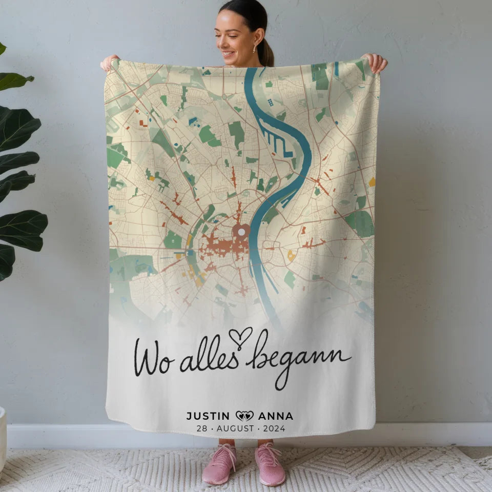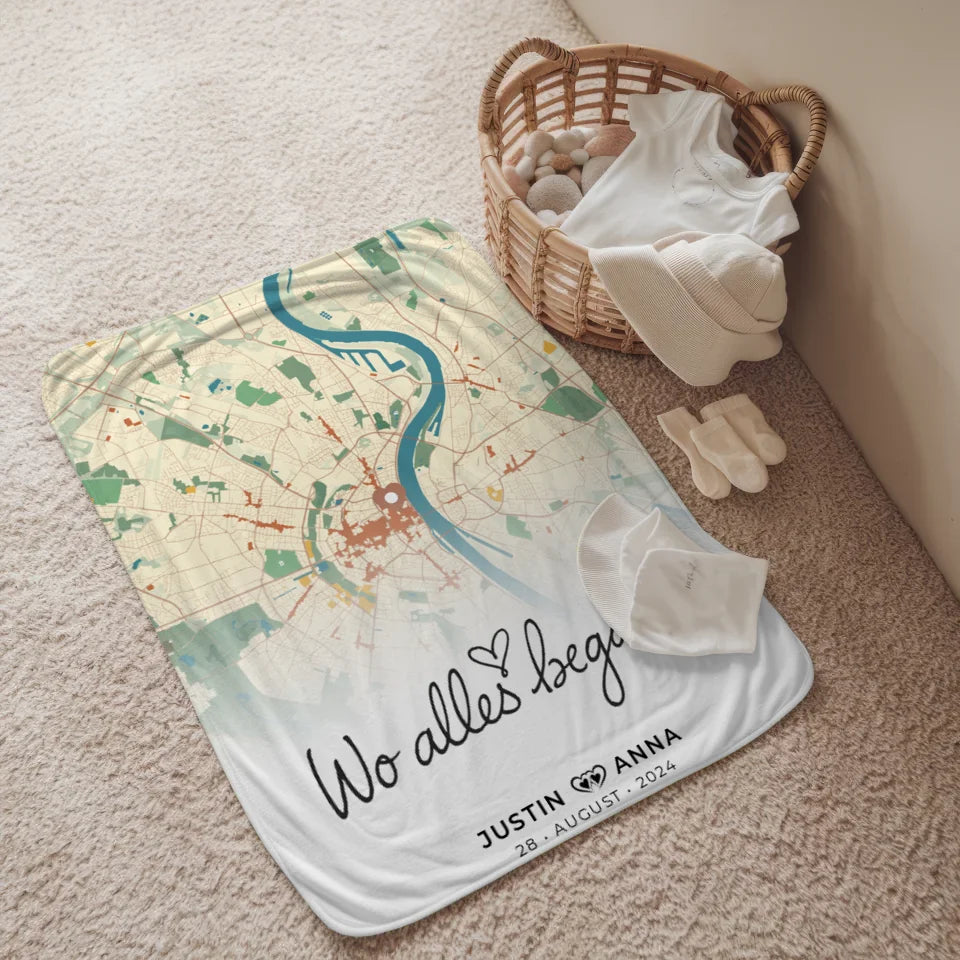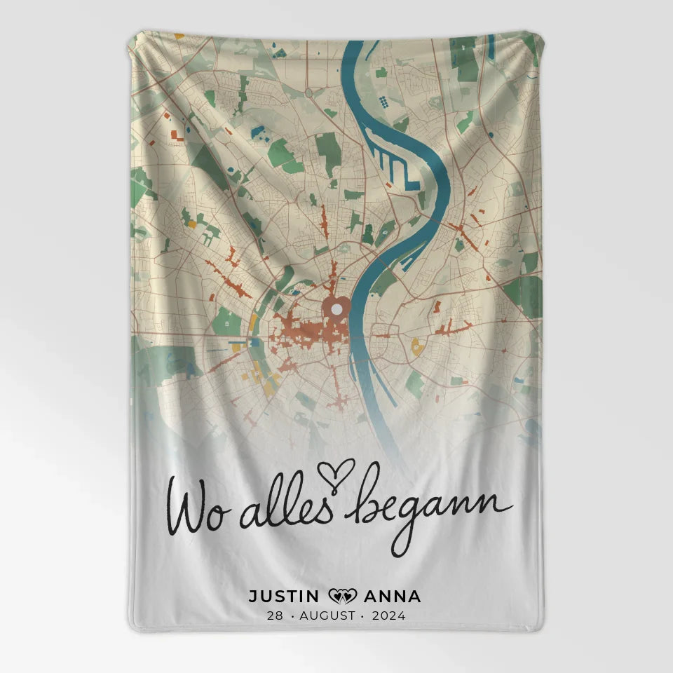 Entdecke die personalisierte Decke Stadtkarten Decke Paare Wo Alles Begann Retro