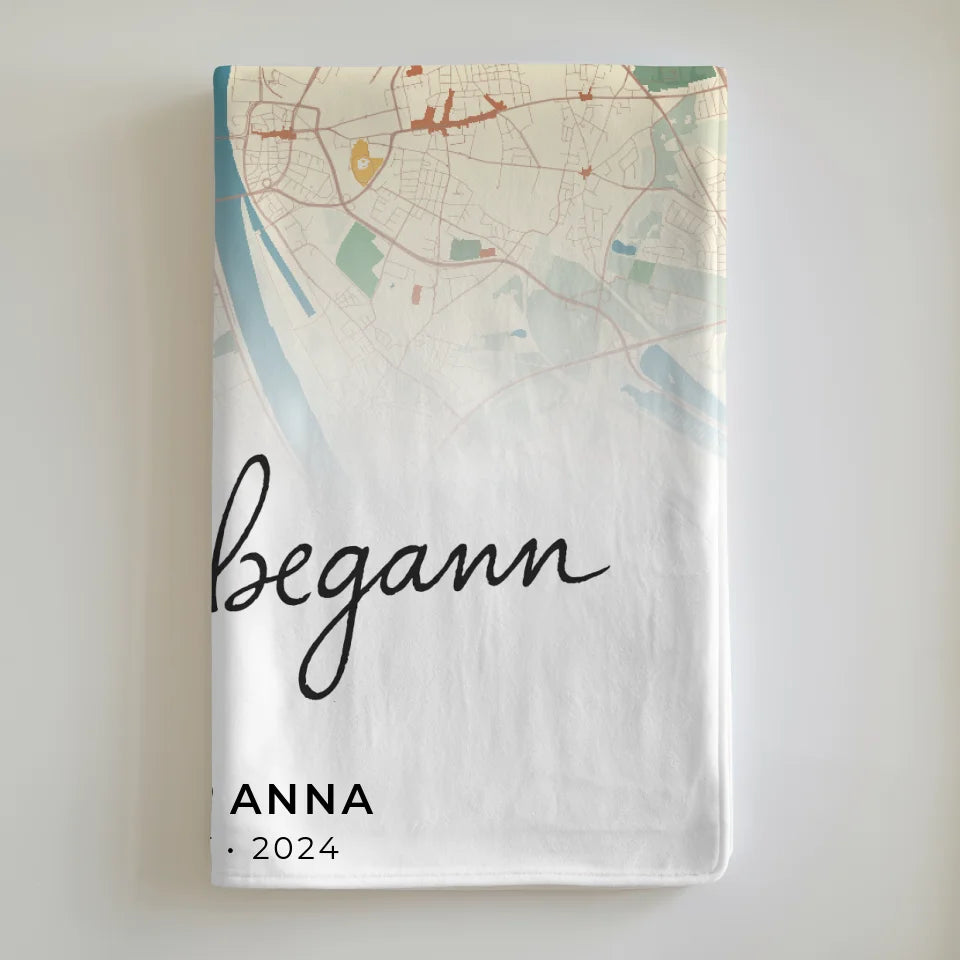 Du hast die Möglichkeit, die Decke ganz nach deinen Vorstellungen zu personalisieren. Wähle eine Stadtkarten-Illustration eines Orts, der für euch von Bedeutung ist – vielleicht der Ort, an dem ihr euch kennengelernt habt oder eure schönste gemeinsame Reise. Füge dazu die Namen eurer Lieben und einen eigenen Spruch oder Wunschtext hinzu, um das Geschenk noch persönlicher zu gestalten. Diese Decke eignet sich perfekt für Anlässe wie den Valentinstag, Geburtstage oder Weihnachten und sorgt für eine emotionale Überraschung.