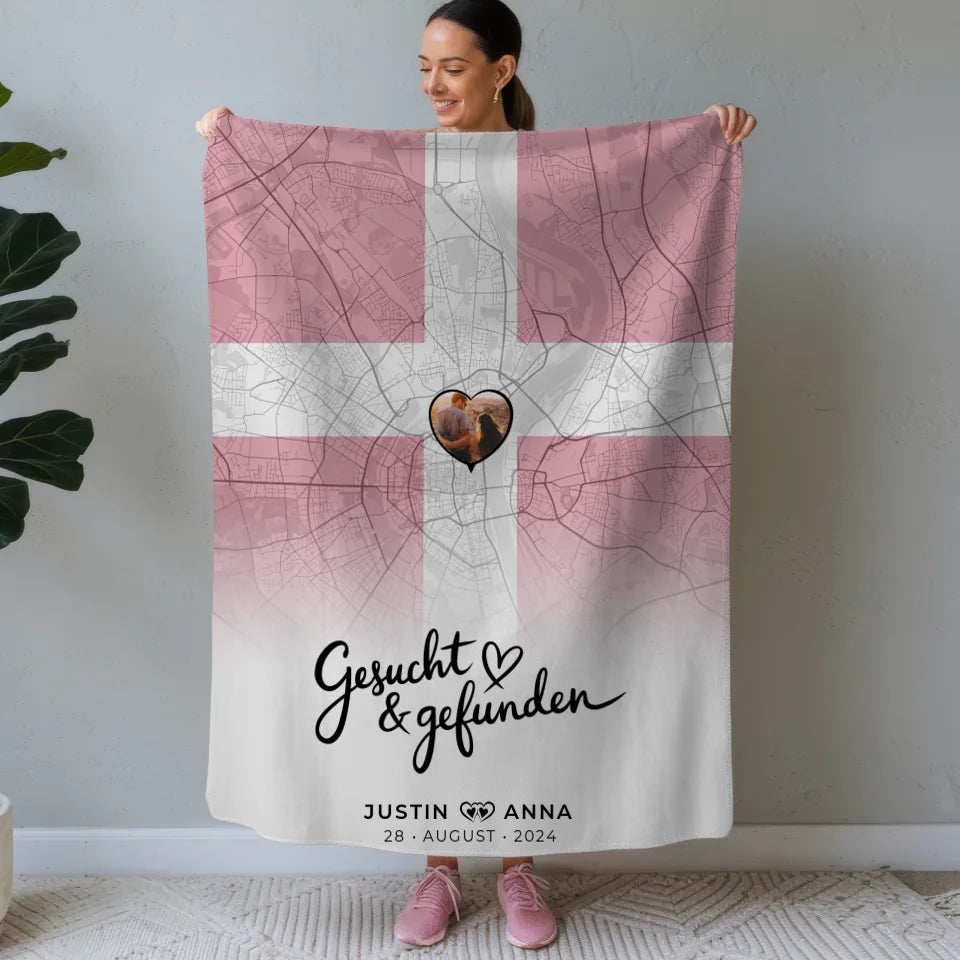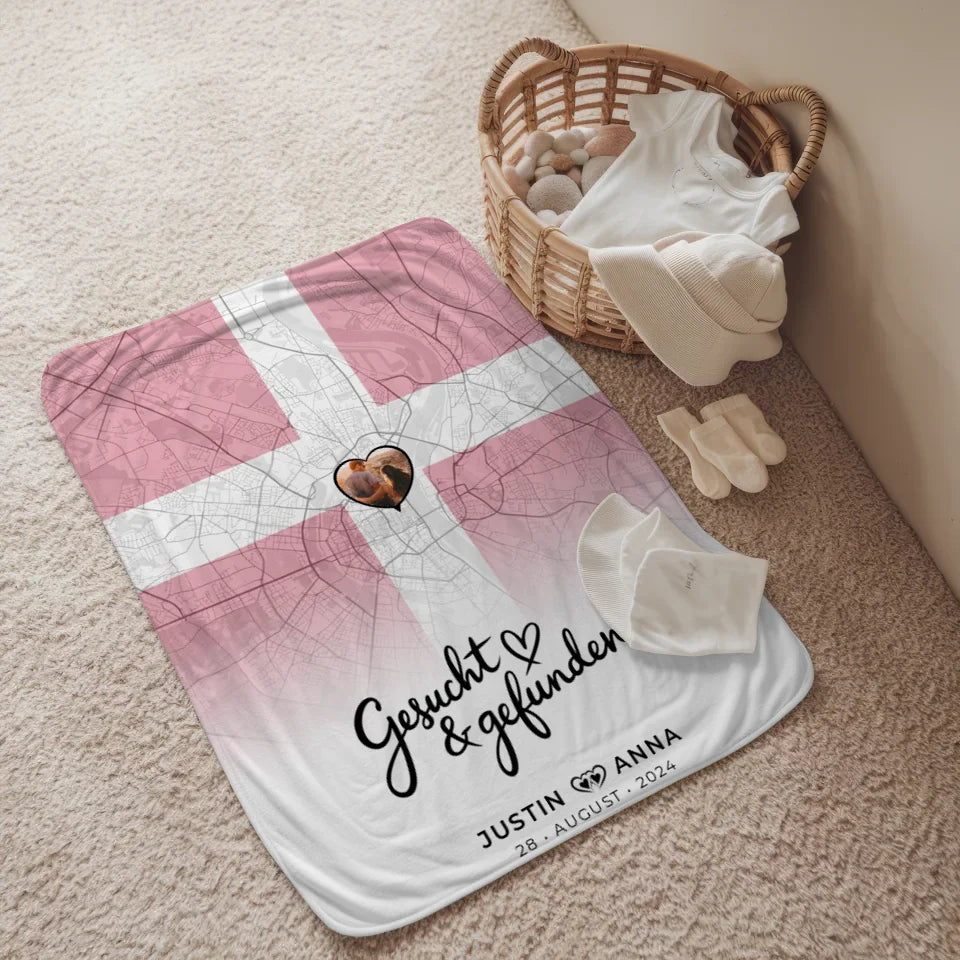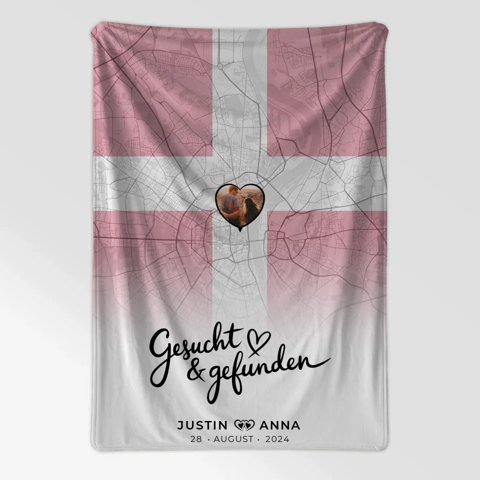 Überrasche deine Liebsten mit der einzigartigen personalisierten Foto Decke Paare Stadtkarte Dänemark Gesucht Gefunden. Diese kuschelige Decke ist nicht nur funktional, sondern auch ein emotionales Highlight in deinem Zuhause. Das besondere Design zeigt den herzerwärmenden Spruch 'Wo Alles Begann' und zaubert gleich beim ersten Blick ein Lächeln auf die Lippen.