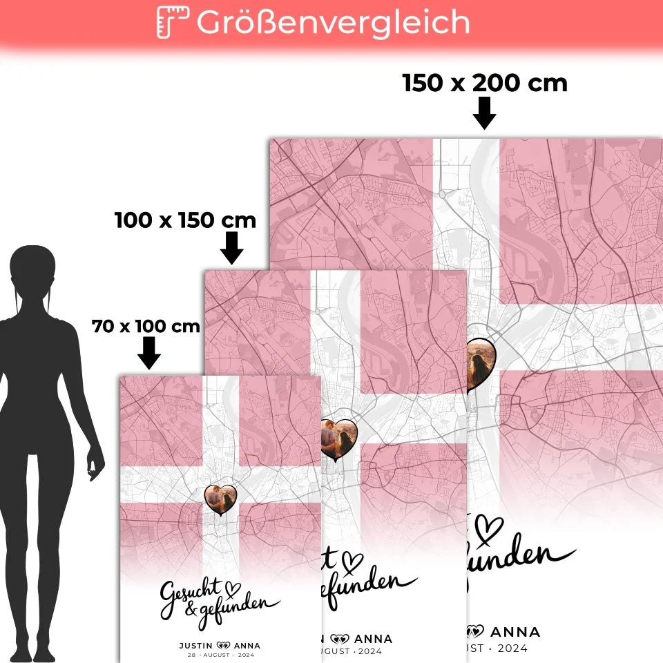Sichere dir jetzt deine personalisierte Foto Decke Paare Stadtkarte Dänemark Gesucht Gefunden und erlebe, wie Erinnerungen lebendig werden. Ideal auch als Foto Map Marker für die Quelle eurer Liebe – du wirst sehen, es wird ein Hit!