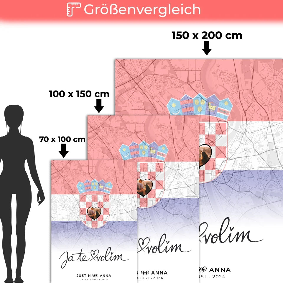 Personalisiert Foto Decke Paare Stadtkarte Kroatien Ja Te Volim