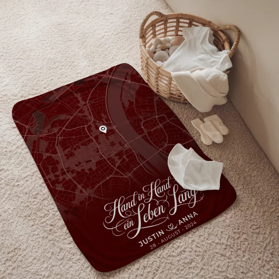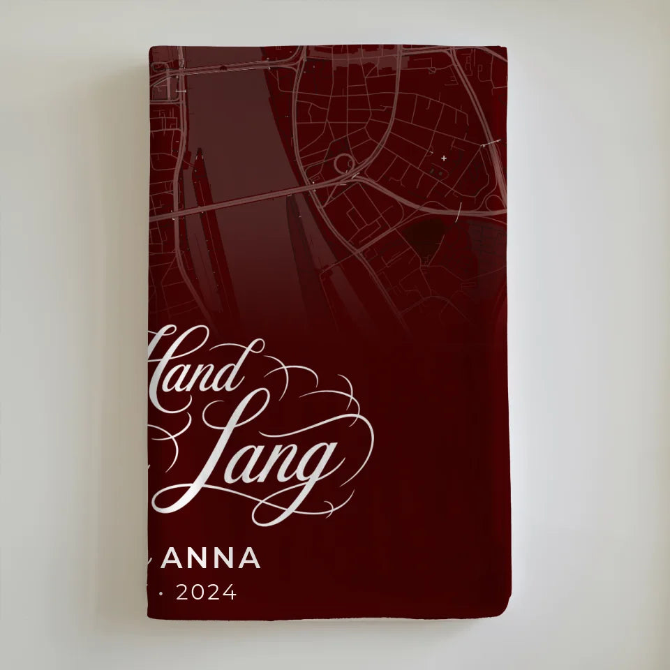Unsere personalisierte Liebes Decke in Rot ist das perfekte Geschenk für Paare, die ihre Liebe auf eine ganz besondere Weise feiern möchten. Mit dem reizvollen Spruch 'Wo Alles Begann' wird diese Decke zu einem einzigartigen Erinnerungsstück. Du kannst sie ganz nach deinen Wünschen anpassen, indem du die Namen des Paares, ein spezielles Datum, eine Stadtkarte von einem bedeutenden Ort und sogar einen eigenen Spruch oder Wunschtext hinzufügst.