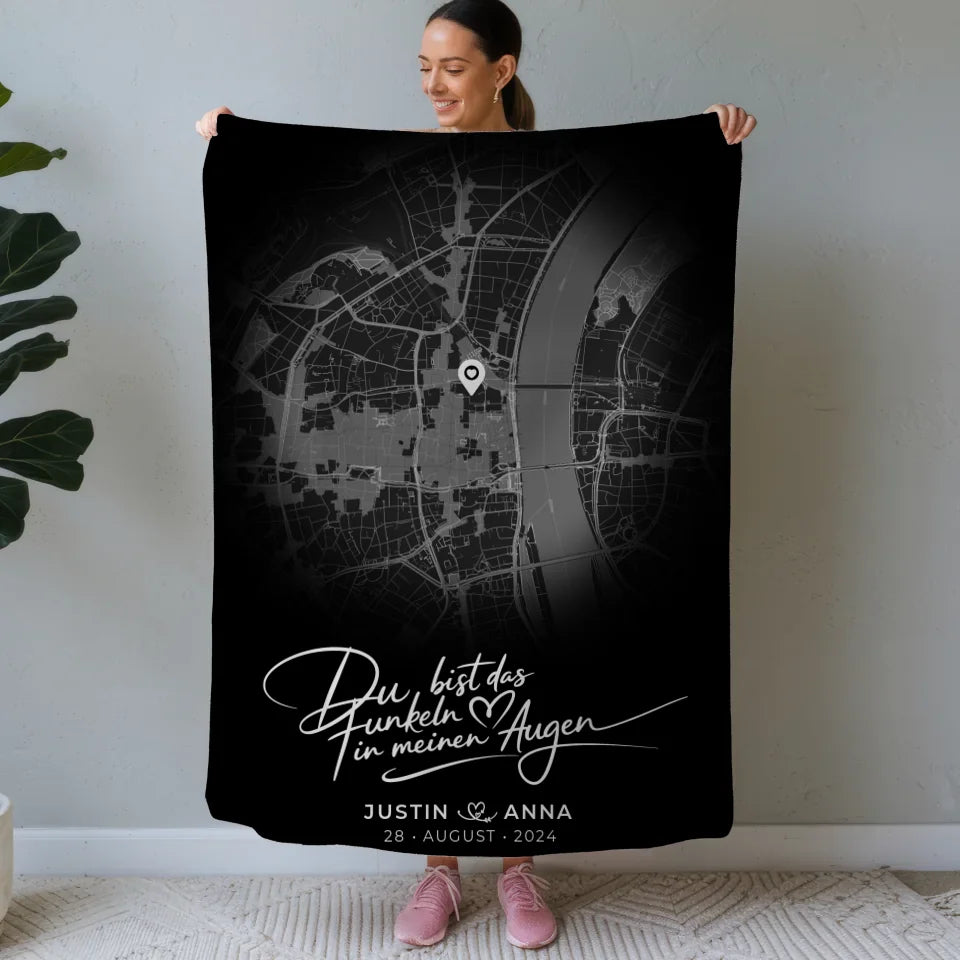 Hole dir jetzt die personalisierte Rund Decke Paare Stadtkarte Das Funkeln und mache jedes besondere Datum unvergesslich!