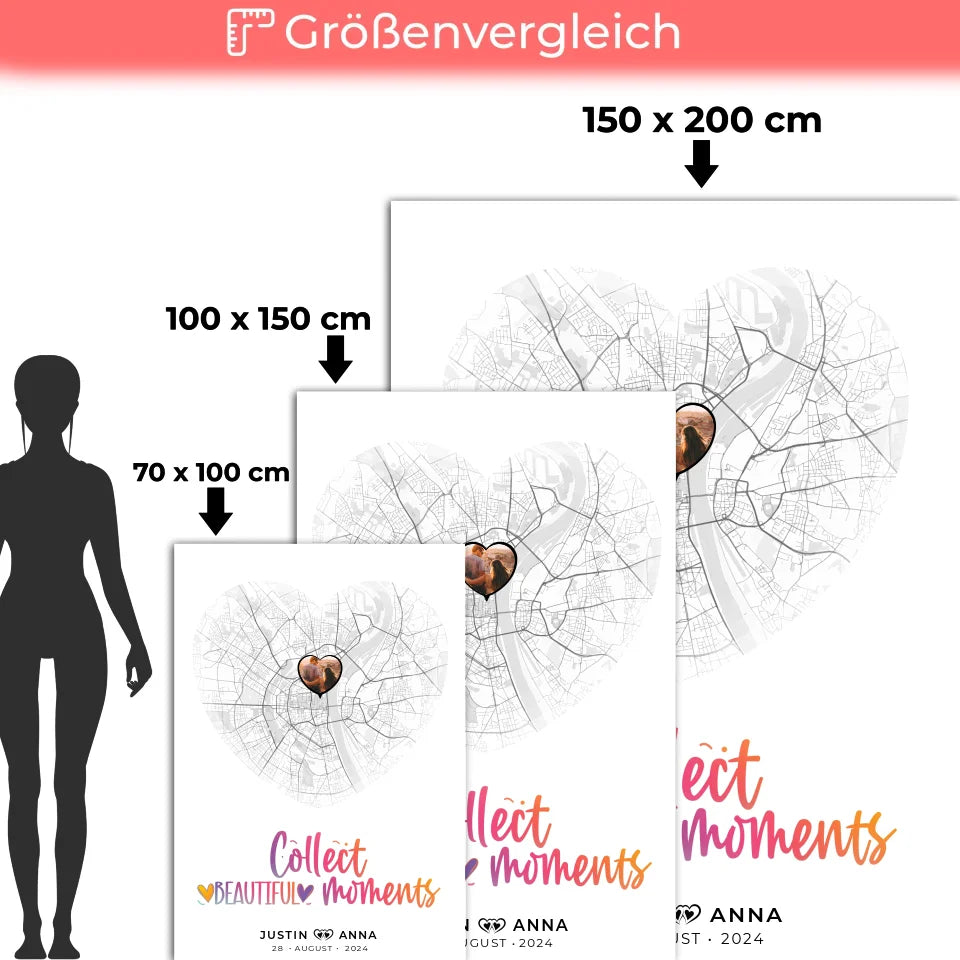 Personalisiert Stadtkarten Decke für Paare Herz Collect Beautiful Moments