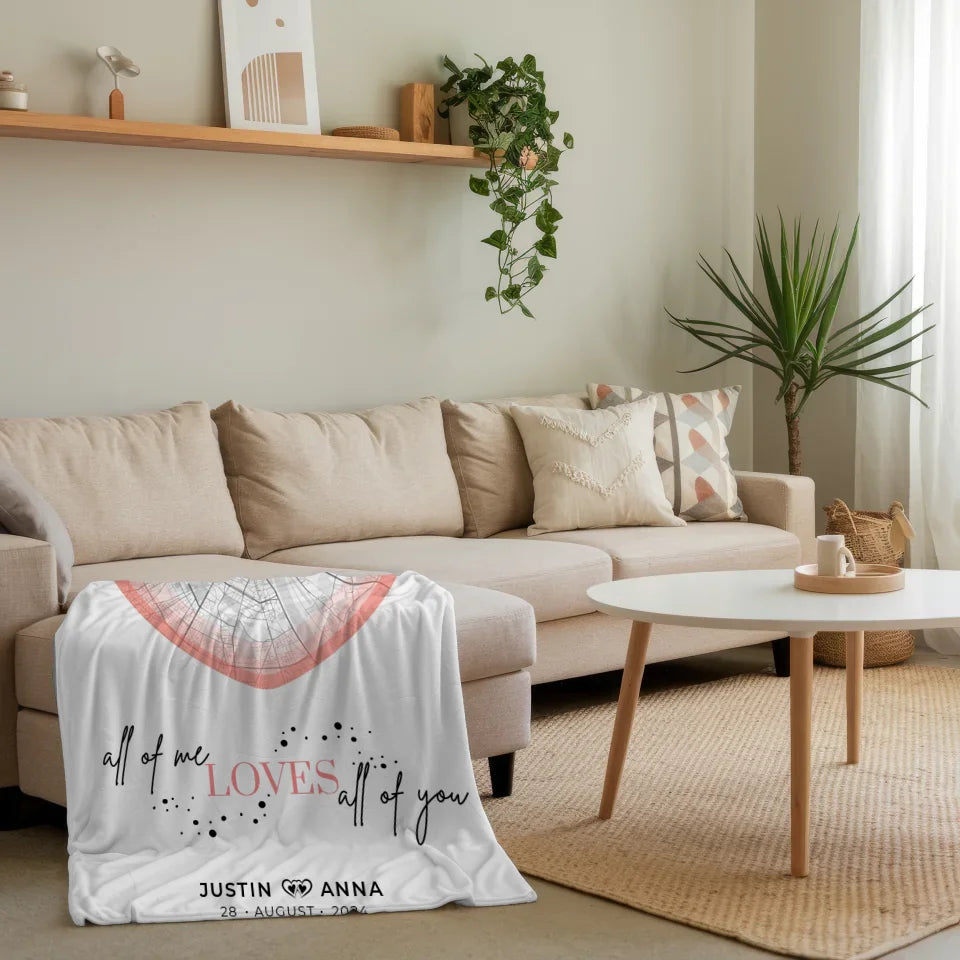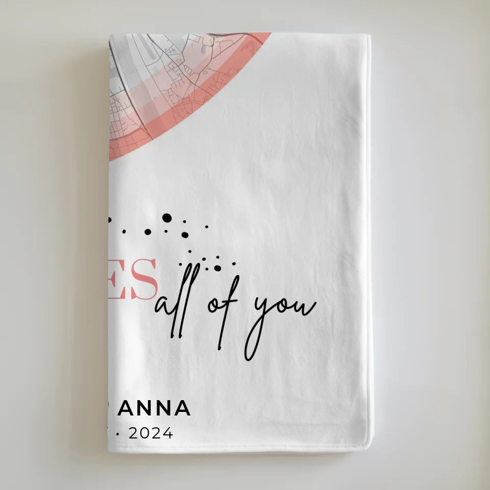 Keywords: Decke, Personalisiert, Stadtkarten Decke, Paare, Herz, All Of Me Loves All Of You, Wo Alles Begann, Roserot.