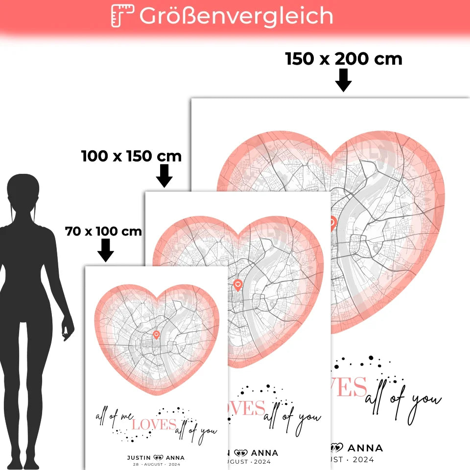 Personalisiert Stadtkarten Decke Paare Herz All Of Me Loves You