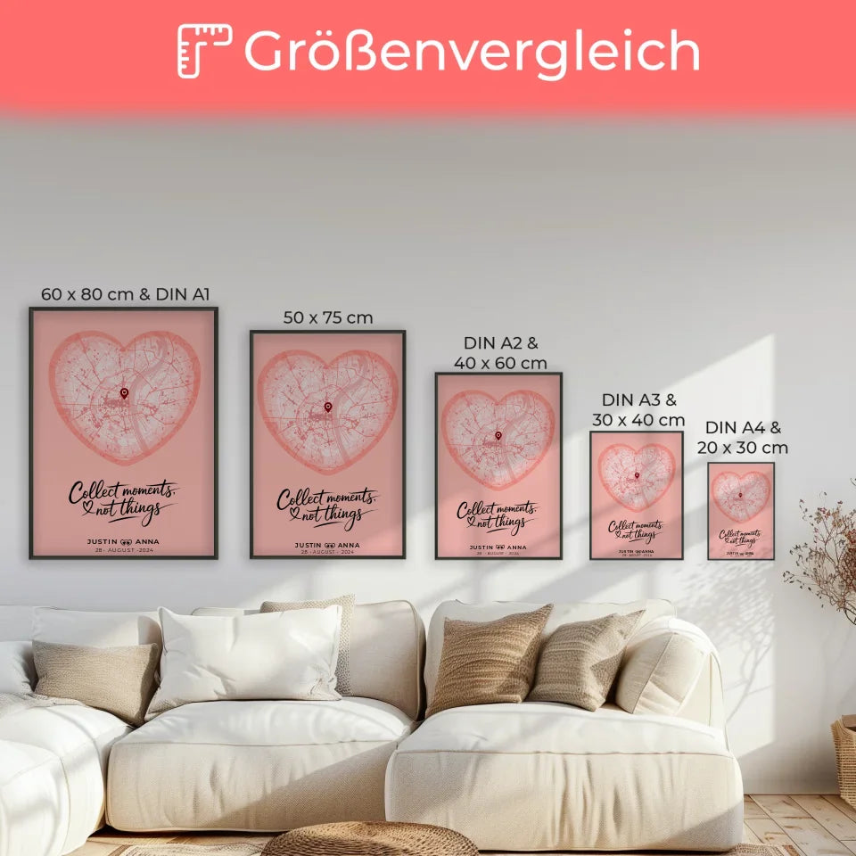 Personalisiert Stadtkarten Poster Paare Herz Altrosa Collect Moments Not Things Wo Alles Begann
