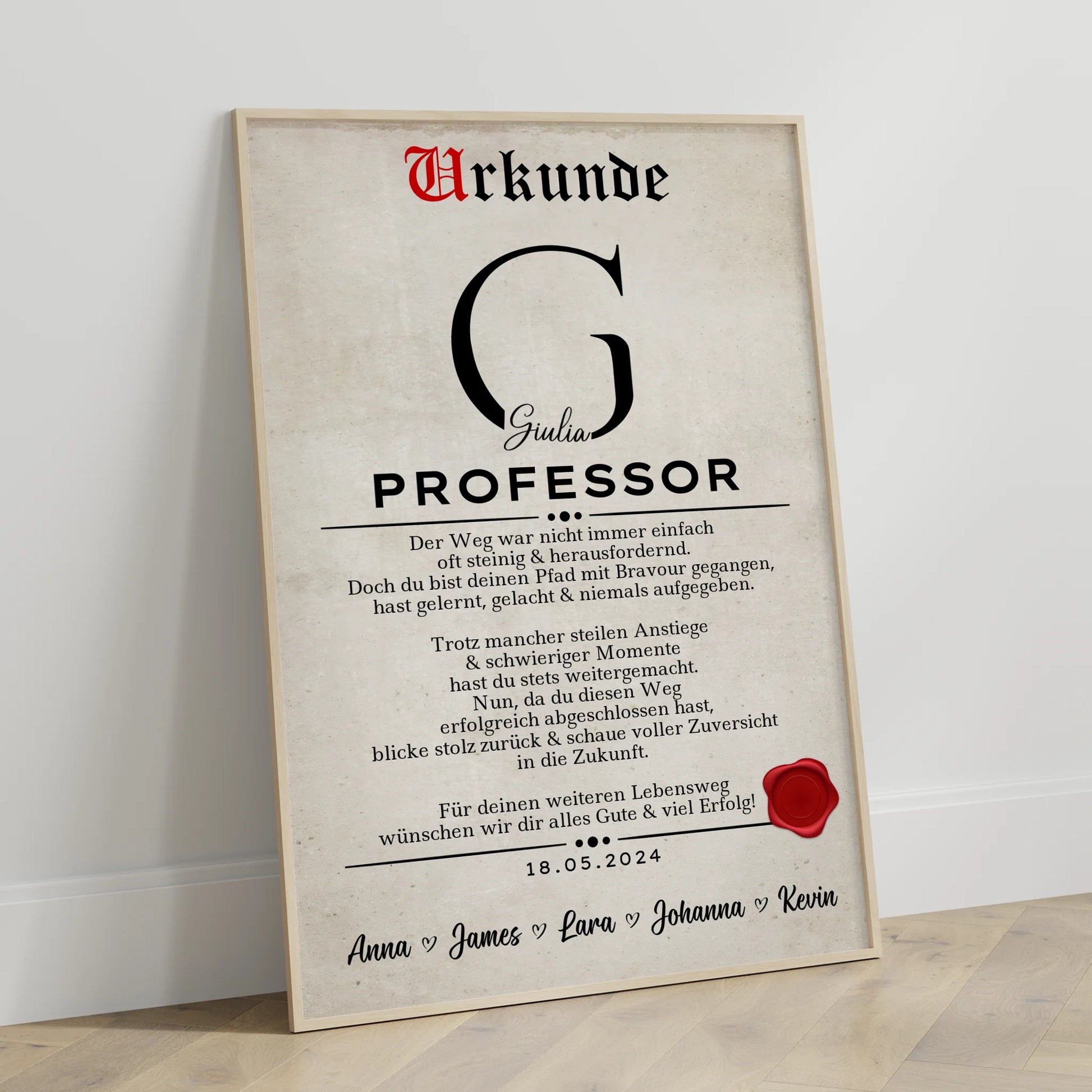 Personalisierte Abschluss Poster Urkunde Geschenk Professor