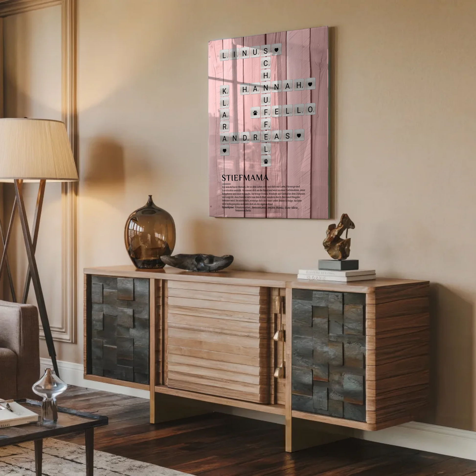 Duke kannst selbst entscheiden, welche Namen in das Kreuzworträtsel eingearbeitet werden sollen. Ob Familienmitglieder, Freunde oder besondere Momente – gestalte dein individuelles Kreuzwortkrätsel mit den Buchstaben auf Steinchen und einem Hintergrundbild deiner Wahl. Diese personalisierte Gestaltung macht dieses Geschenk zu etwas ganz Besonderem!