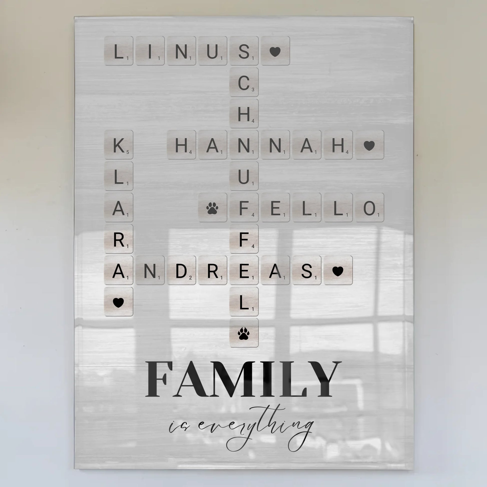 Personalisierte Acrylglas Foto Poster Family Scrabble Namen