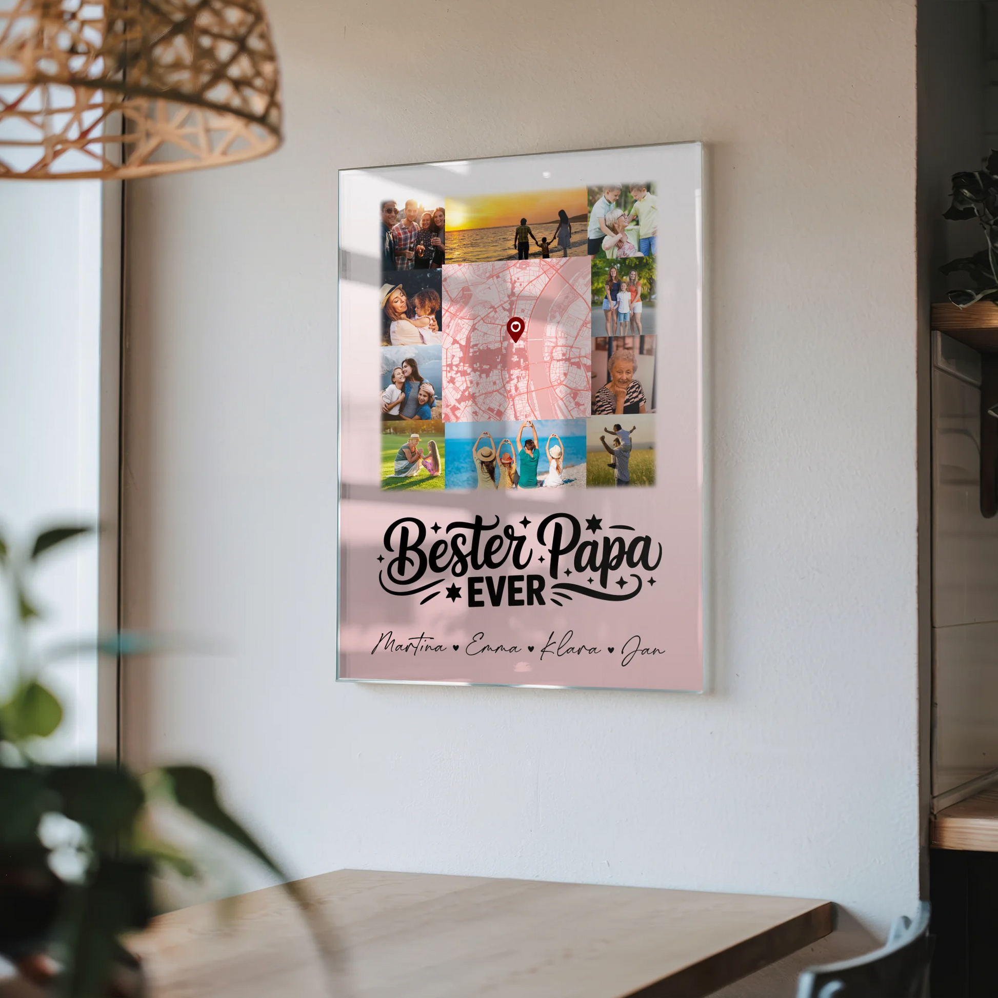 Personalisierte Acrylglas Mit Foto 10 Fotos und Karte in der Mitte Bester Papa Ever