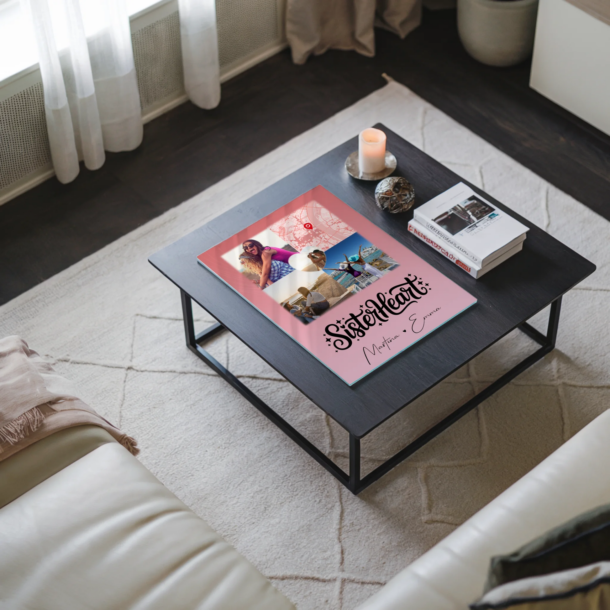 Überrasche deine Schwester mit unserem einzigartigen Produkt: die Personalisierte Acrylglas Mit Foto 3 Fotos und 1 Herz Foto Karte Sisterheart Geschenke. Dieses besondere Geschenk vereint persönliche Fotos, einen liebevollen Wunschtext und einen einzigartigen Ort, um deine Verbundenheit auszudrücken. Das Design mit dem schönen Spruch Sisterheart macht es zu einem emotionalen Highlight, das garantiert für Freude sorgt. Du kannst bei diesem Geschenk bis zu 4 Fotos, einen eigenen Spruch oder Wunschtext sowie eine Karte mit einem besonderen Ort und Namen individuell gestalten. Perfekt geeignet für den Geburtstag deiner Schwester, um ihr zu zeigen, wie viel sie dir bedeutet. Das personalisierte Acrylglas ist nicht nur langlebig und hochwertig, sondern auch ein echter Blickfang, der Erinnerungen auf stilvolle Weise festhält. Überrasche deine Schwester mit einem einzigartigen Geschenk, das ihre Persönlichkeit widerspiegelt und sie an eure gemeinsame Zeit erinnert. Mache den Geburtstag deiner Schwester unvergesslich mit diesem liebevoll gestalteten, personalisierten Geschenk – eine schöne Erinnerung, die sie immer schätzen wird.