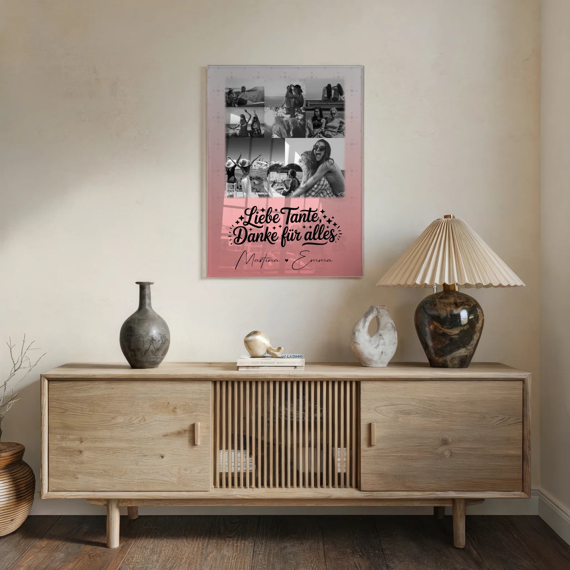 Personalisierte Acrylglas Mit Foto 8 Fotos 1 Herz Foto Liebe Tante Danke für alles Schwarz-Weiß