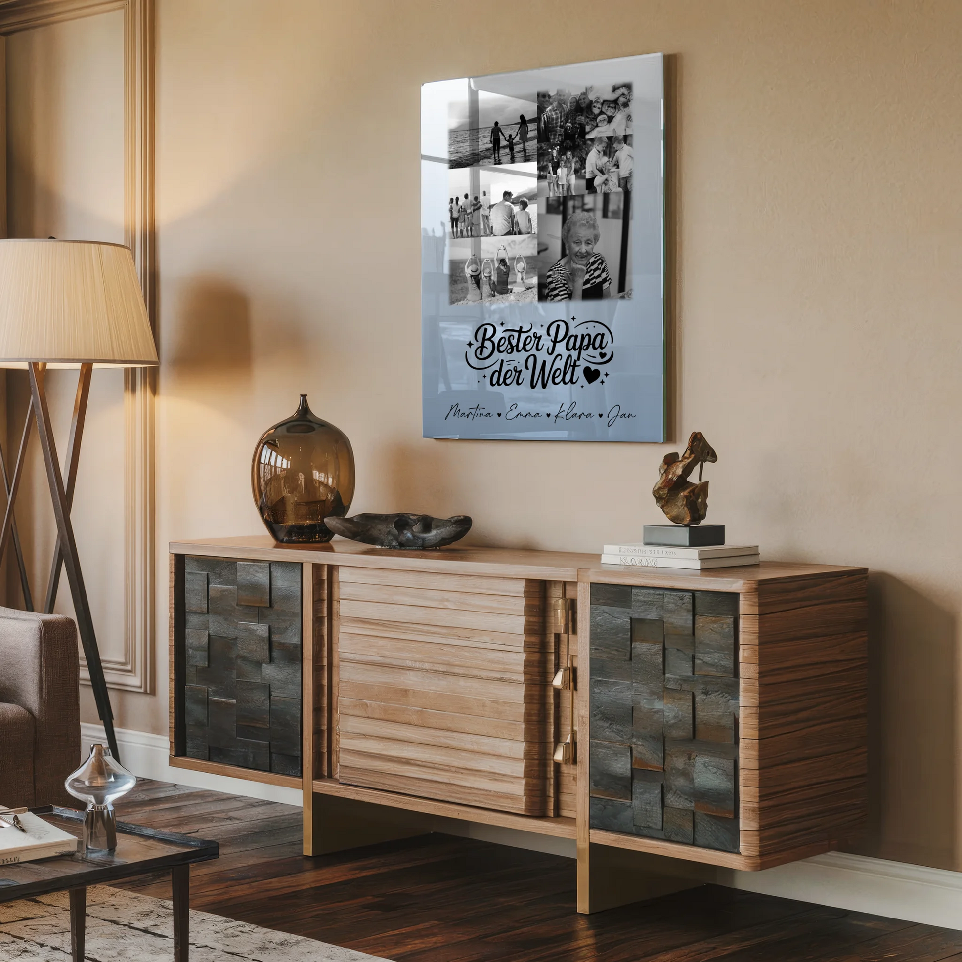 Überrasche deinen Papa mit einem einzigartigen und persönlichen Geschenk: der Personalisierte Acrylglas Mit Foto 9 Fotos Bester Papa Der Welt Schwarz-Weiß Geschenk. Dieses stilvolle Acrylglas ist die perfekte Fotocollage für Papa, die seine besten Momente in einem eleganten Design vereint. Du kannst dieses besondere Geschenk individuell gestalten, indem du 9 Fotos, einen eigenen Spruch oder Wunschtext sowie die Namen deiner Familie hinzufügst. Das Schwarz-Weiß-Design verleiht dem Geschenk eine zeitlose Eleganz, die jeden Papa begeistern wird. Ob zum Vatertag, Geburtstag oder einfach als liebevolle Geste – dieses personalisierte Acrylglas ist das ideale Geschenk für den besten Papa der Welt. Zeige deine Wertschätzung und schaffe ein unvergessliches Erinnerungsstück, das dein Papa garantiert schätzen wird. Bestelle jetzt dein personalisiertes Geschenk und mache den Tag deines Papas zu etwas ganz Besonderem!