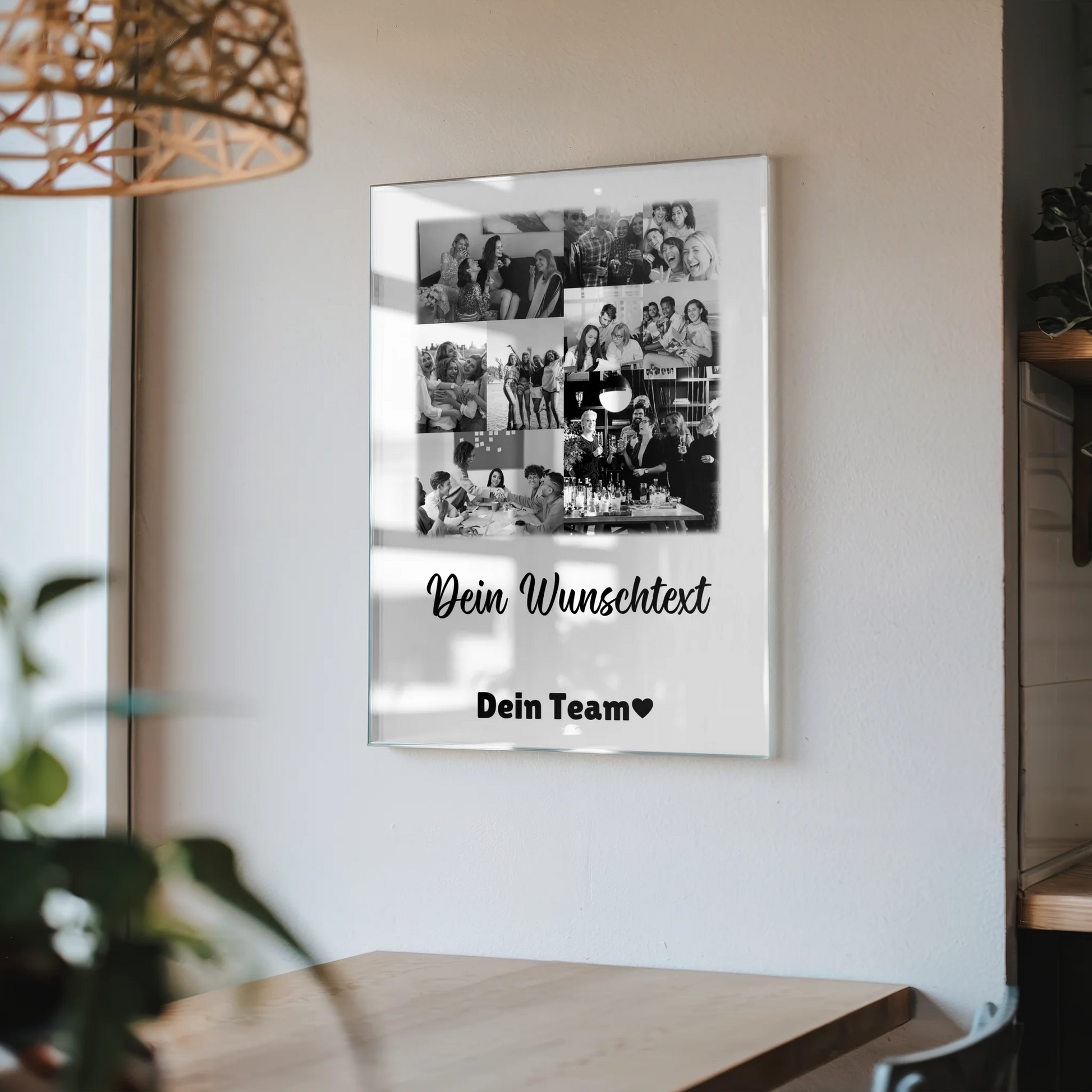 Ăberrasche deine Kollegin mit einem einzigartigen und persönlichen Geschenk â dem Personalisierte Acrylglas Mit Foto 9 Fotos Wunschtext Geschenk fĂŒr besondere AnlĂ€sse. Dieses individuell gestaltete Acrylglas ist perfekt, um schöne Erinnerungen festzuhalten und deiner Verabschiedung einen besonderen Rahmen zu geben. Du kannst das Acrylglas ganz nach deinen WĂŒnschen personalisieren, indem du 9 Fotos, einen eigenen Spruch oder Wunschtext sowie den Namen deiner Kollegin hinzufĂŒgst. Das macht dieses Geschenk zu einem unvergesslichen Andenken, das garantiert fĂŒr Freude sorgt. Ideal geeignet fĂŒr den Anlass der Verabschiedung, ist dieses personalisierte Acrylglas ein durchdachtes PrĂ€sent, das zeigt, wie sehr du die gemeinsame Zeit schĂ€tzt. Ăberzeuge dich selbst von der hochwertigen Verarbeitung und der individuellen Gestaltung, die dieses Geschenk zu etwas Einzigartigem machen. Schenke deiner Kollegin ein persönliches Andenken, das sie noch lange an die gemeinsame Zeit erinnert â mit dem Personalisierte Acrylglas Mit Foto 9 Fotos Wunschtext Geschenk fĂŒr besondere AnlĂ€sse.