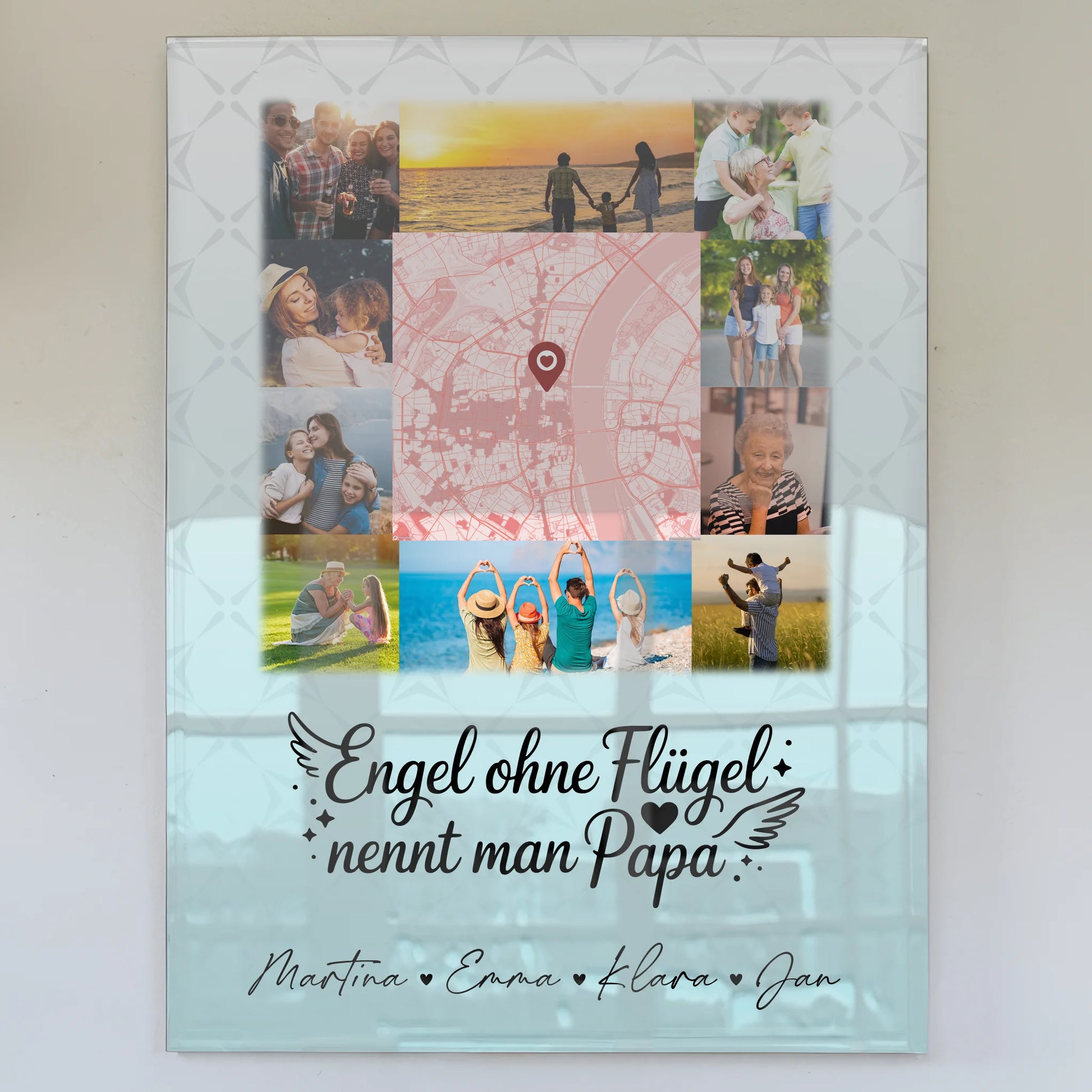 Überrasche Deinen Papa mit unserem einzigartigen Personalisierte Acrylglas Mit Foto mit 10 Fotos und Karte in der Mitte Bruder ist ein Engel. Dieses individuelle Geschenk ist ideal, um Deine Liebe und Wertschätzung zum Ausdruck zu bringen. Du kannst es ganz nach Deinen Wünschen gestalten, indem Du bis zu 10 Fotos, einen persönlichen Spruch oder Wunschtext, Namen sowie eine Karte mit einem besonderen Ort hinzufügst. Das Design trägt den schönen Spruch: „Engel ohne Flügel nennt man Bruder“, was die besondere Verbindung zwischen Geschwistern und Vätern symbolisiert. Dieses Geschenk eignet sich perfekt als Fotocollage für Papa zum Vatertag oder anderen besonderen Anlässen. Es ist ein emotionales und individuelles Präsent, das Deinem Papa zeigt, wie viel er Dir bedeutet. Überrasche ihn mit diesem einzigartigen, personalisierten Acrylglas und schaffe eine bleibende Erinnerung, die er immer schätzen wird.