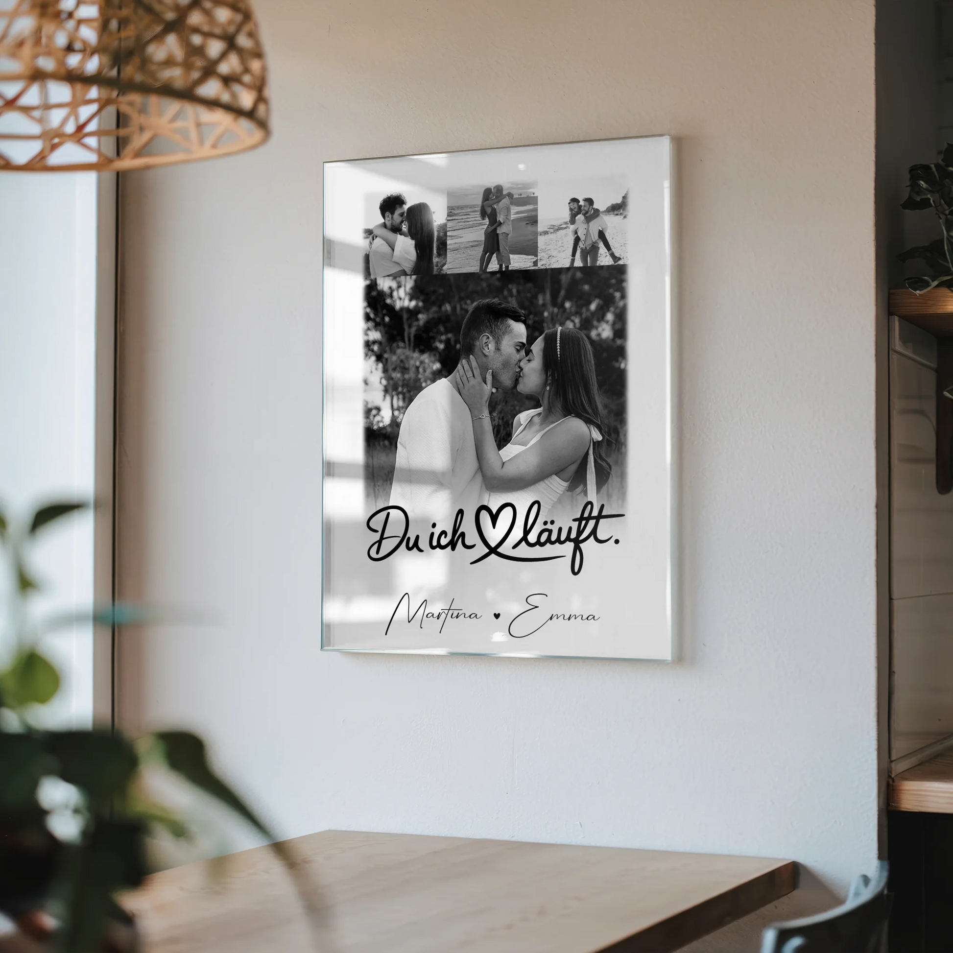Überrasche deine Liebsten mit unserem einzigartigen Produkt: die Personalisierte Acrylglas Mit Foto mit 4 Fotos Du Ich Läuft Geschenk für Freunde und Familie. Dieses besondere Geschenk ist perfekt, um gemeinsame Erinnerungen stilvoll und modern zu präsentieren. Du kannst dieses personalisierte Acrylglas individuell gestalten, indem du bis zu 4 Fotos, einen eigenen Spruch oder Wunschtext sowie die Namen deiner Liebsten hinzufügst. Das Design ist mit dem schönen Spruch Du Ich Läuft versehen und eignet sich ideal für den Valentinstag, um deine Liebe auf eine besondere Weise zu zeigen. Dieses Geschenk ist perfekt für Paare, die ihre gemeinsamen Momente in einem hochwertigen und persönlichen Dekor festhalten möchten. Überzeuge dich selbst von der hochwertigen Verarbeitung und der individuellen Gestaltungsmöglichkeit, um deinem Partner, Freunden oder Familienmitgliedern eine unvergessliche Freude zu bereiten. Mach den Valentinstag oder jeden anderen besonderen Anlass zu etwas Einzigartigem mit diesem personalisierten Acrylglas, das garantiert für strahlende Augen sorgt.