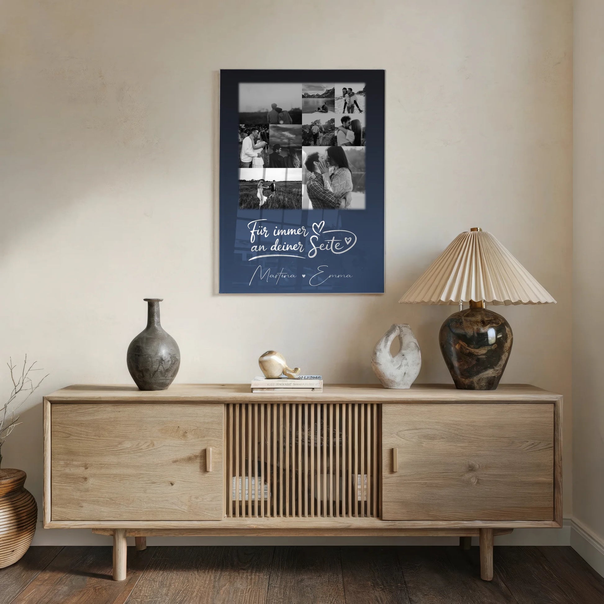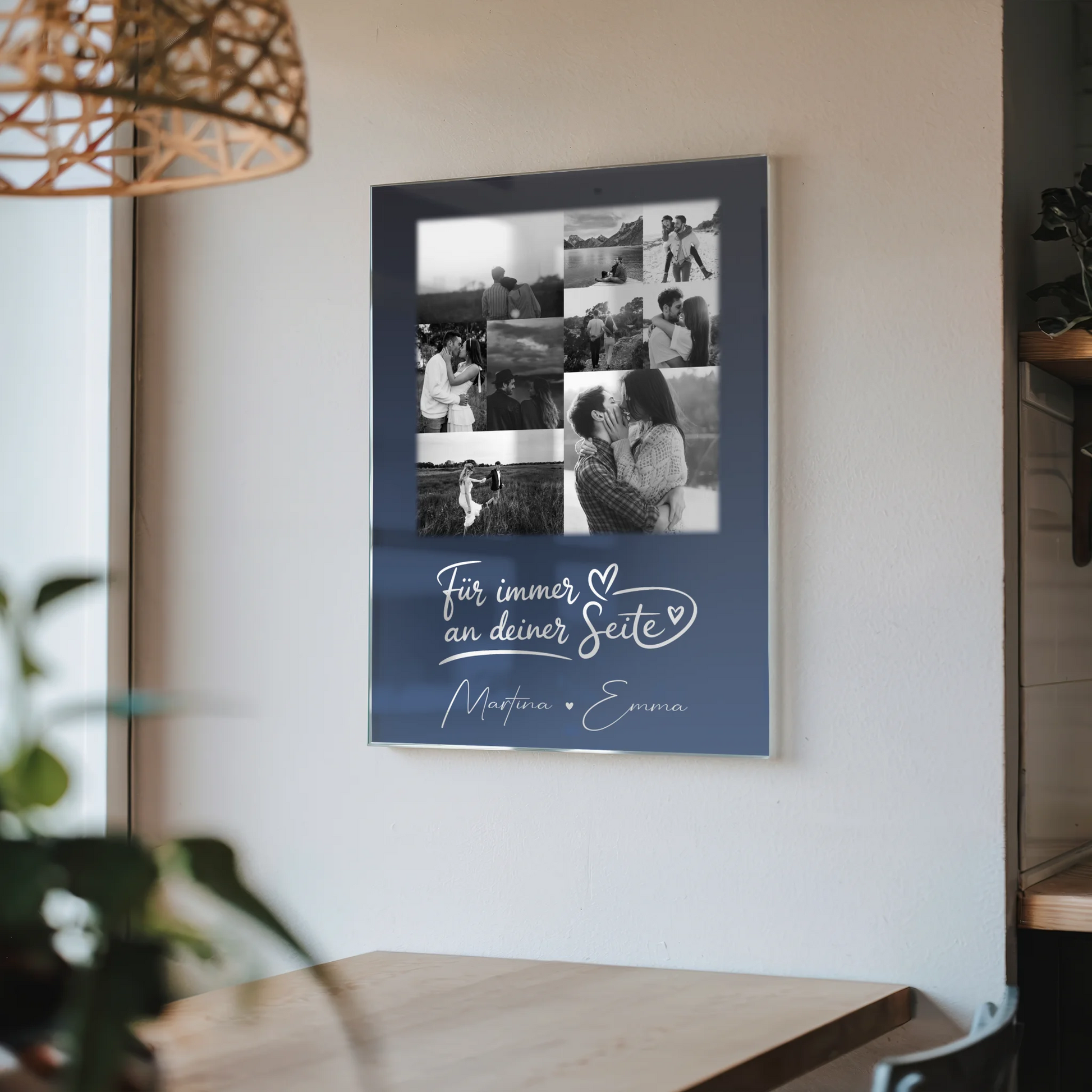 Entdecke das perfekte Geschenk für deinen besonderen Menschen mit unserem personalisierten Personalisierte Acrylglas Mit Foto mit 9 Fotos Kocham cię Liebe auf Polnisch Geschenk. Dieses einzigartige Acrylglas kannst du individuell gestalten, indem du bis zu 9 deiner schönsten Fotos, einen persönlichen Spruch oder Wunschtext sowie die Namen deiner Liebsten hinzufügst. Das elegante Design trägt den liebevollen Spruch „Für Immer An Deiner Seite“ und ist somit das ideale Präsent für Paare, die ihre Liebe feiern möchten. Ob zum Valentinstag, Jahrestag oder einfach als liebevolle Geste – dieses personalisierte Geschenk zeigt deine Gefühle auf besondere Weise. Überrasche deinen Partner oder deine Partnerin mit einem einzigartigen Erinnerungsstück, das die schönsten Momente eurer Beziehung festhält. Mit hochwertiger Verarbeitung und individuellem Design ist dieses Acrylglas ein langlebiges Andenken, das immer wieder Freude bereitet. Mache den Valentinstag unvergesslich und zeige deine Liebe mit einem personalisierten Geschenk, das von Herzen kommt.