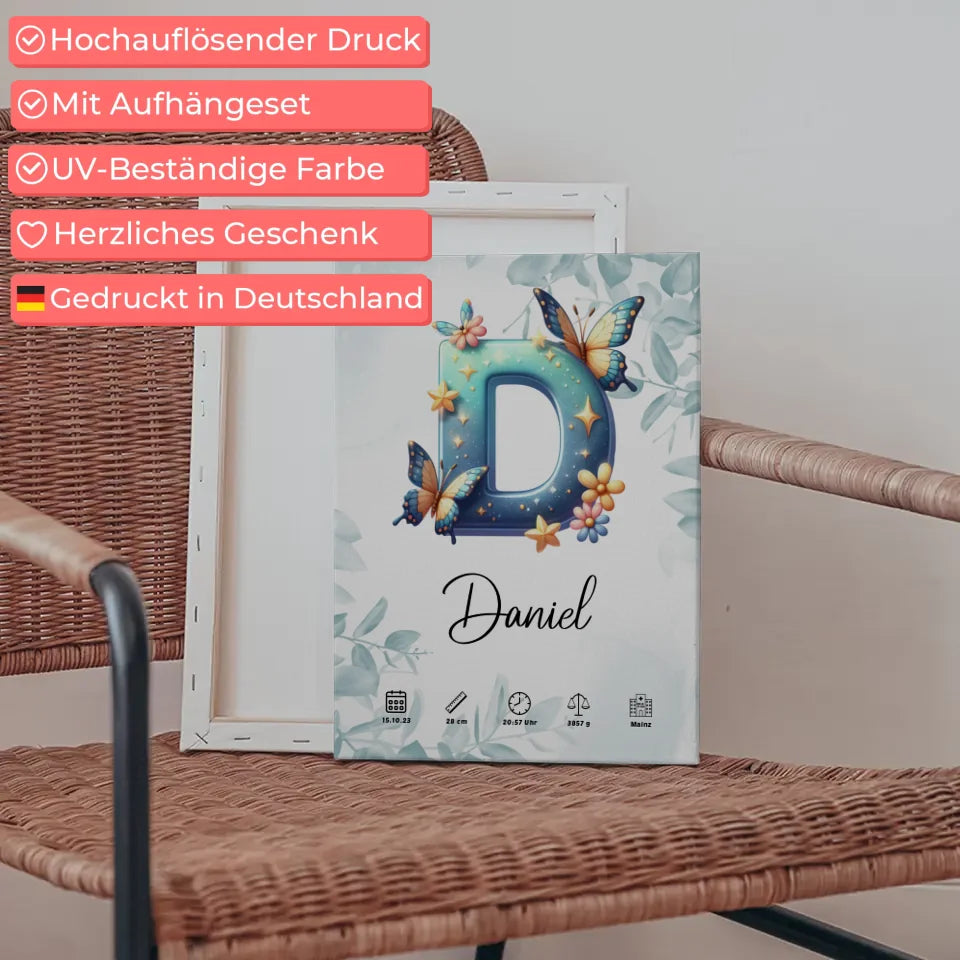 Mit der Möglichkeit, den Buchstaben D sowie Buchstaben A-Z zu wählen, kannst du die Leinwand ganz nach deinen Wünschen gestalten. Jedes Detail kann an den Empfänger angepasst werden, sodass dein Geschenk individuell und einzigartig wird. Egal, ob als Geburtstagsgeschenk oder zur Feier der Geburt eines Neugeborenen – die personalisierte Buchstaben Leinwand bringt Freude und ist ein Highlight in jedem Zuhause.