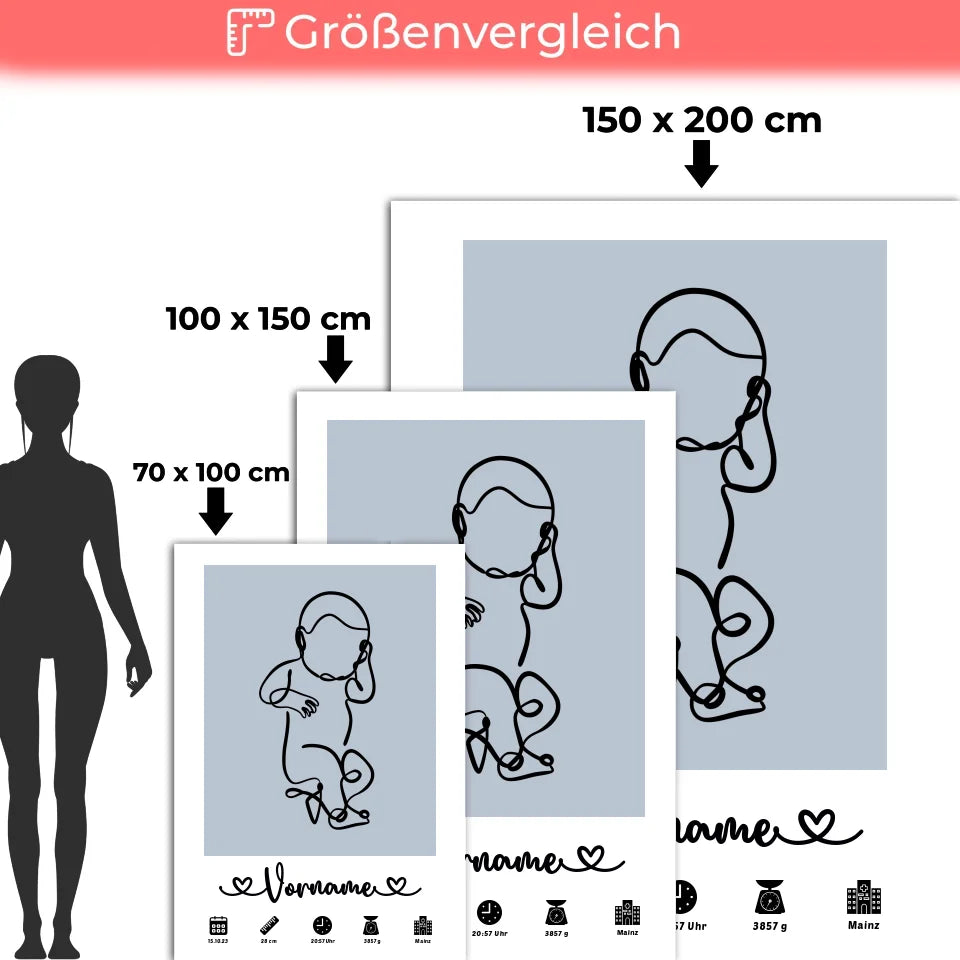Entdecke die einzigartige personalisierte Decke Azurblau Geburt mit Name Geburtsdaten Baby Lineart. Dieses liebevoll gestaltete Geschenk ist nicht nur ein wunderbares Accessoire für das Kinderzimmer, sondern auch eine bleibende Erinnerung an den besonderen Tag der Geburt. Du kannst die Decke ganz nach deinen Wünschen personalisieren: füge die Geburtsdaten wie Gewicht, Größe, Uhrzeit und Datum sowie den Namen deines kleinen Lieblings hinzu. Die sanfte Azurblau-Farbe und das stilvolle Lineart-Design machen die Decke zur perfekten Wahl für jeden Anlass, sei es zum Geburtstag oder als liebevolle Erinnerung an die Geburt. Überrasche die frischgebackenen Eltern mit einem ganz persönlichen Geschenk, das in jedem Kinderzimmer einen besonderen Platz finden wird. Diese personalisierte Decke ist nicht nur praktisch, sondern auch ein echter Hingucker. Bestelle jetzt deine personalisierte Decke und halte die wertvollen Erinnerungen an die ersten Lebensmomente deines Babys fest!