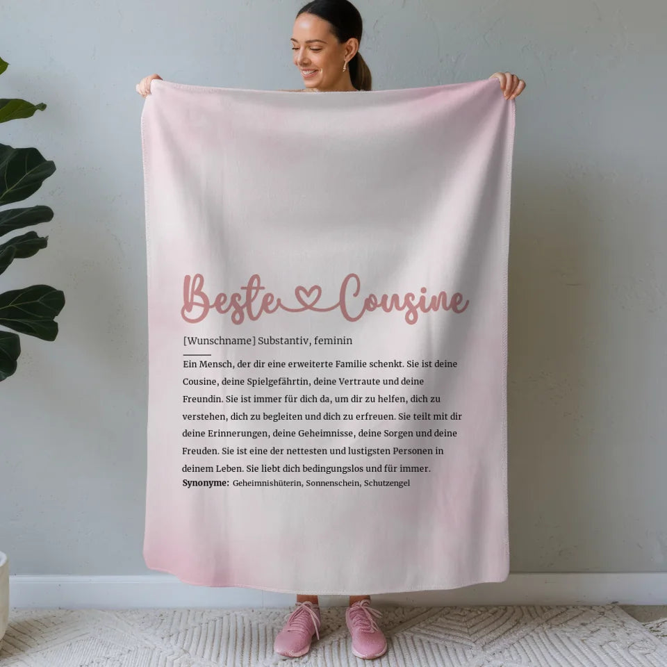 Personalisierte Decke Beste Cousine Herz mit Name Definition