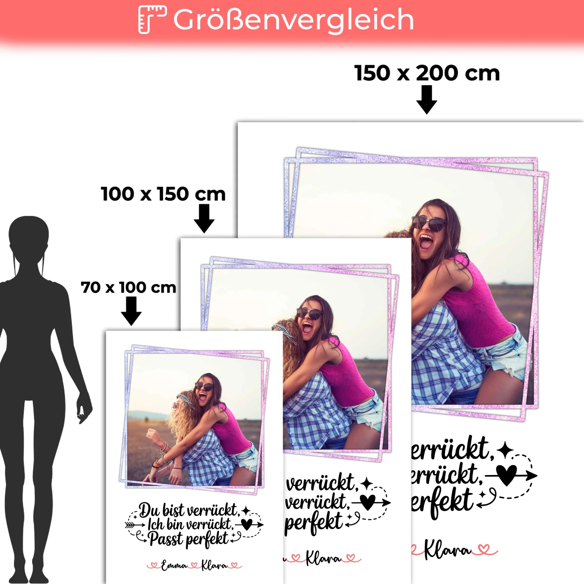 Schenke deiner besten Freundin ein persönliches Erinnerungsstück: diese personalisierte Decke vereint ein Lieblingsfoto, den Namen und einen individuellen Wunschtext zu einem emotionalen Geburtstagsgeschenk voller Wärme und Nähe.