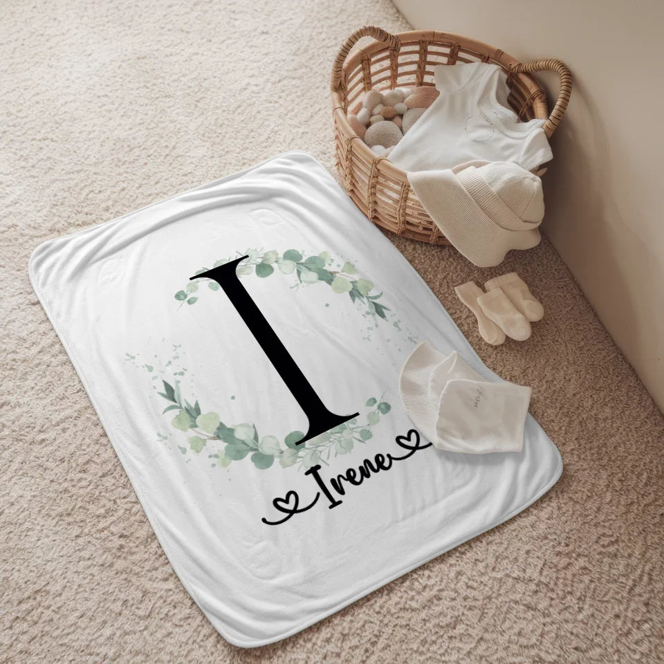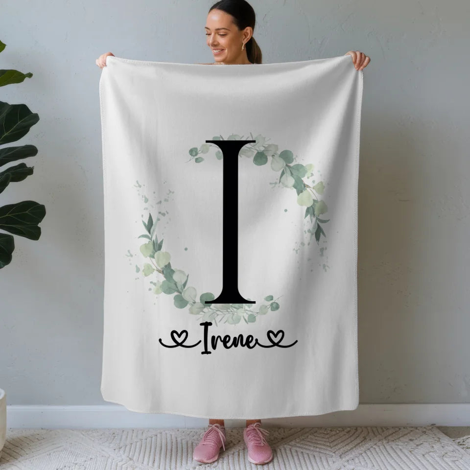 Personalisierte Decke Buchstaben I Eucalyptus Kranz A-Z