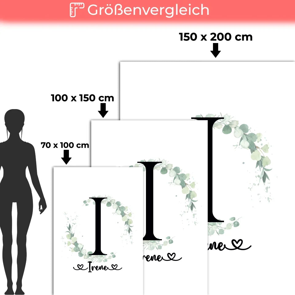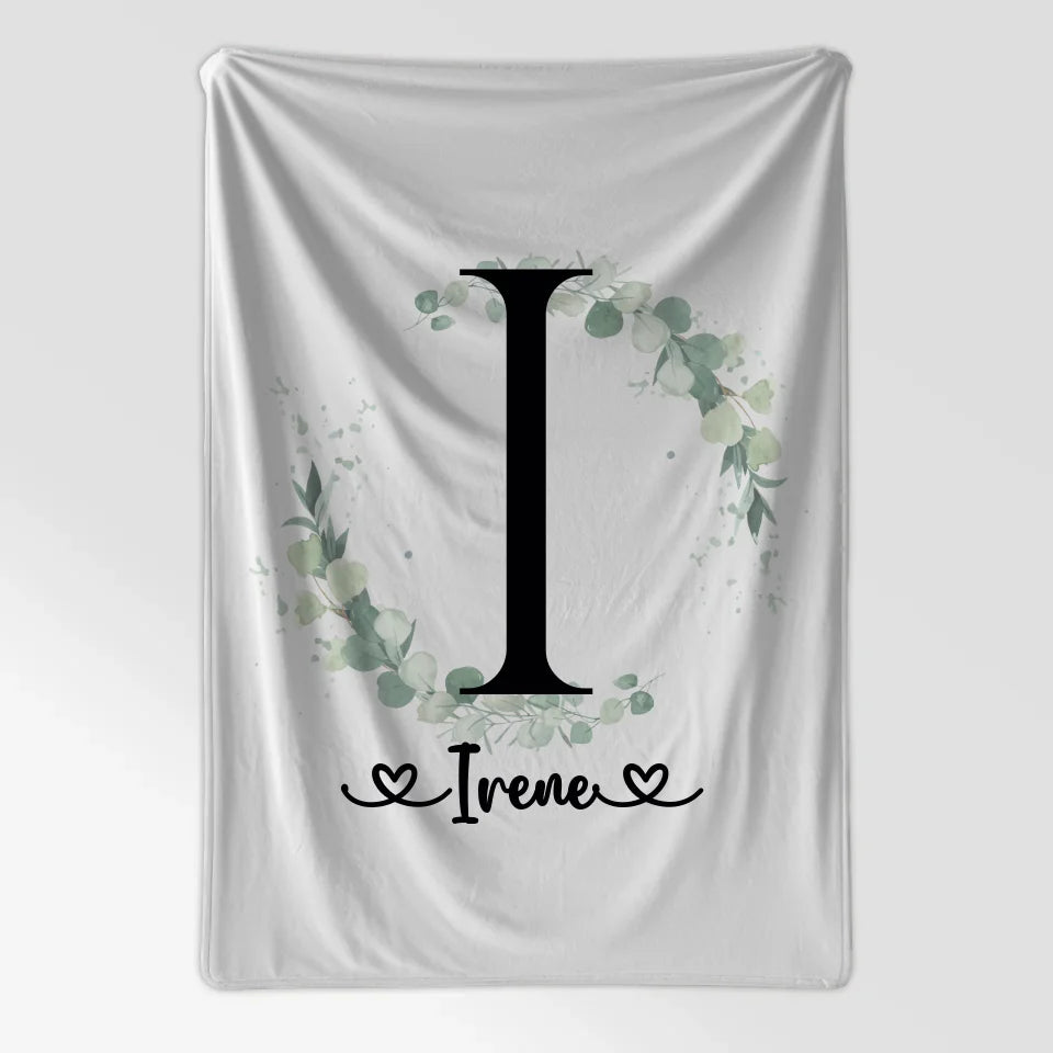 Entdecke die personalisierte Decke Buchstaben I Eucalyptus Kranz A-Z