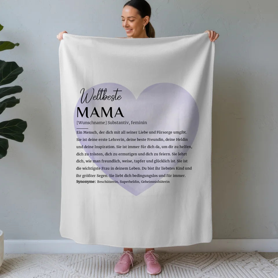 Personalisierte Decke Definition Mama mit Name Wasserfarben Herz Lila – Ein liebevolles Geschenk