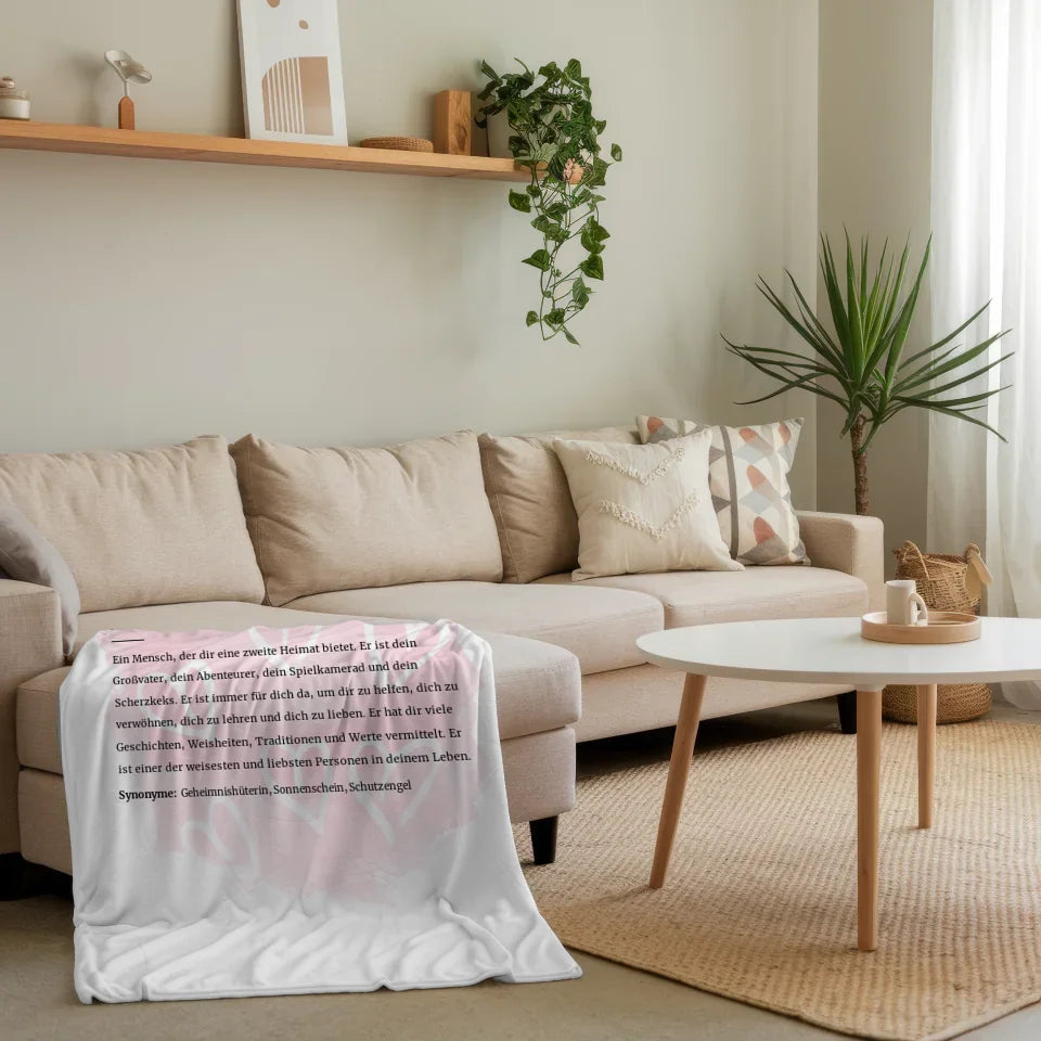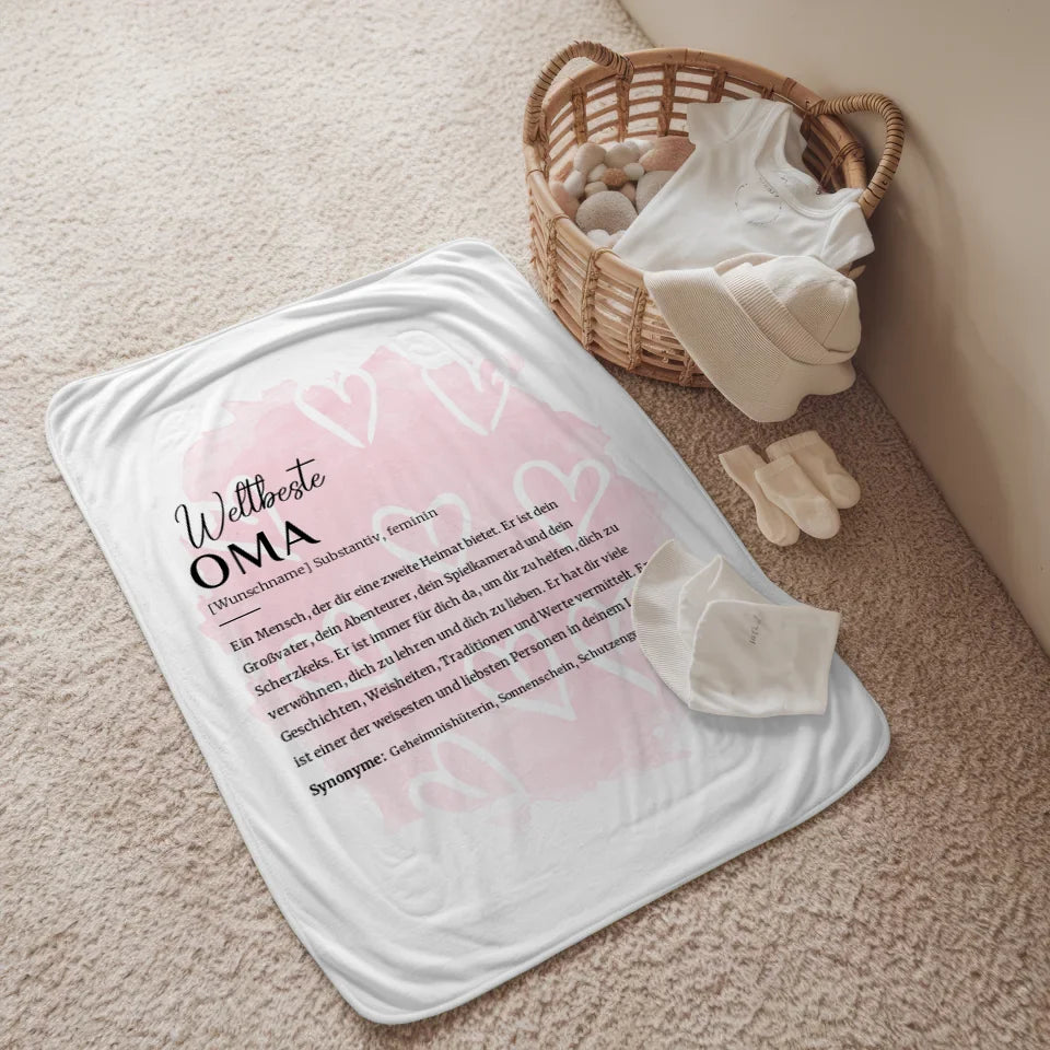 Entdecke die personalisierte Decke Definition Oma mit Name Herzchen Rosa