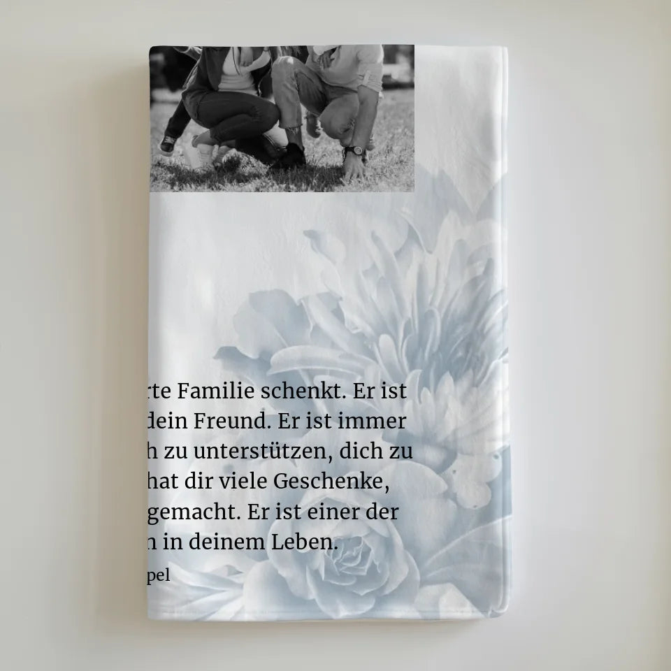 Die personalisierte Decke Definition Onkel ist nicht nur ein praktisches Geschenk, sondern auch ein echter Hingucker in jedem Raum. Ideal als dekoratives Element, während sie gleichzeitig für tolle Kuschelstunden sorgt. Außerdem kannst du die schöne Blüten Blau Hintergrundoption wählen, um das Design abzurunden.