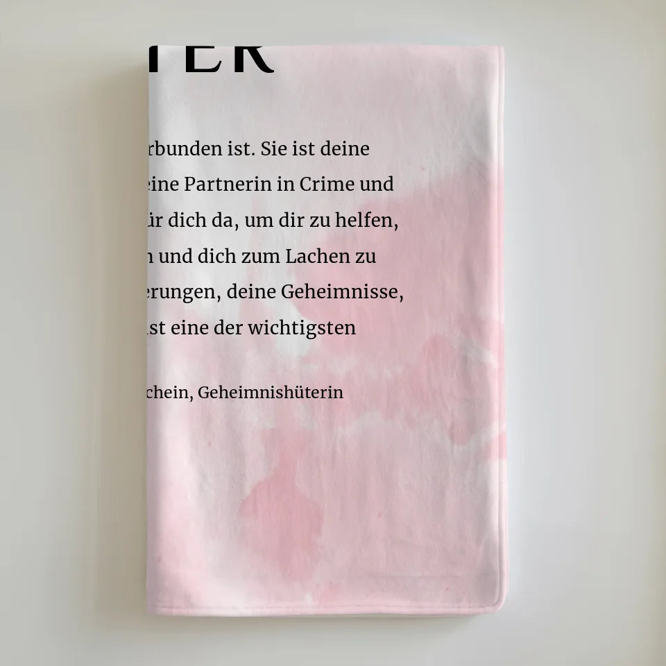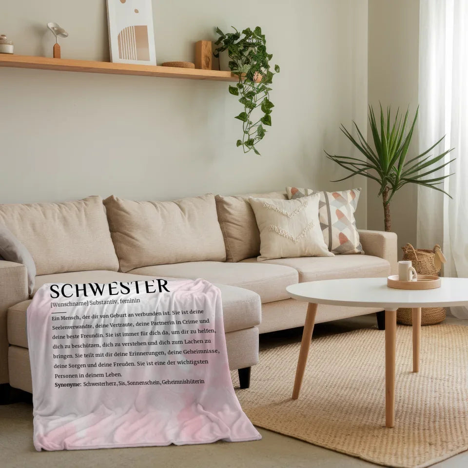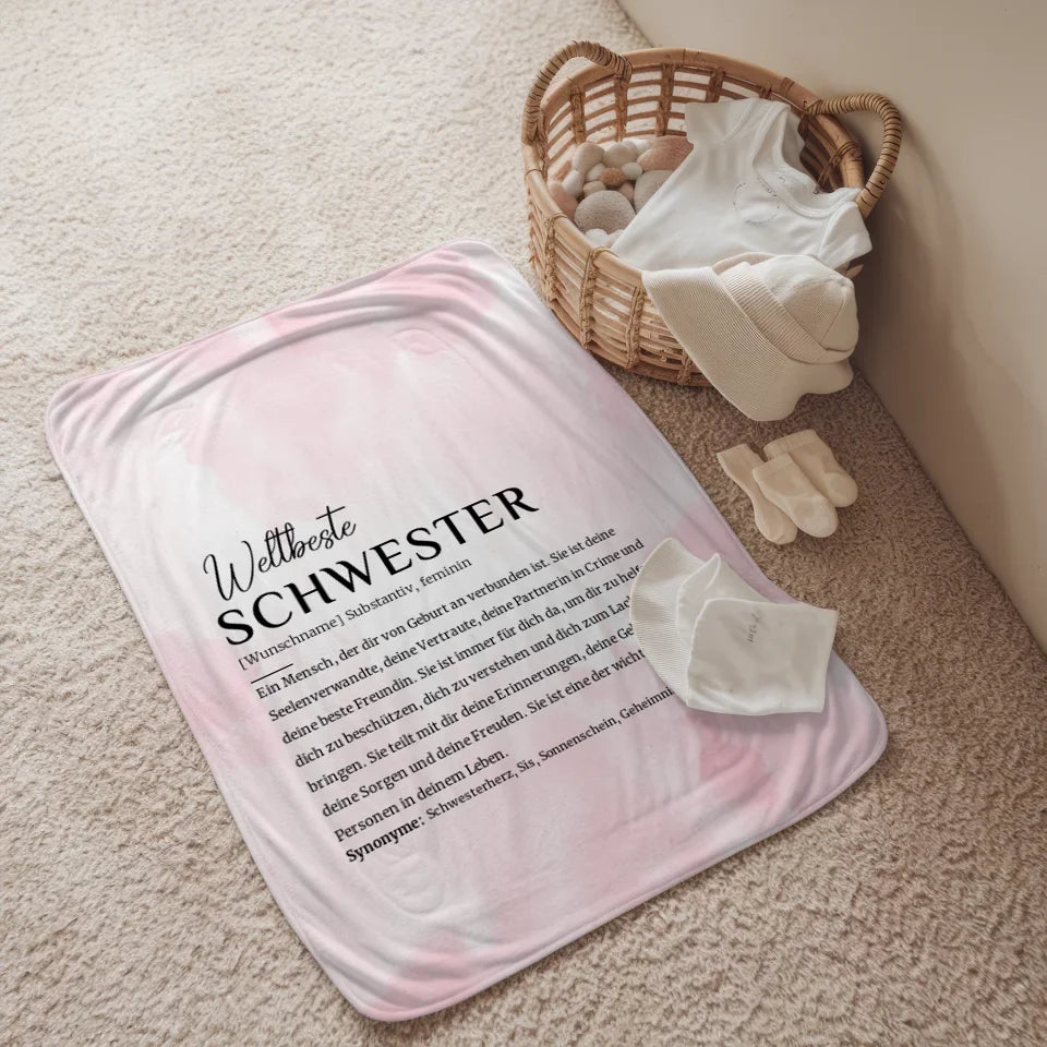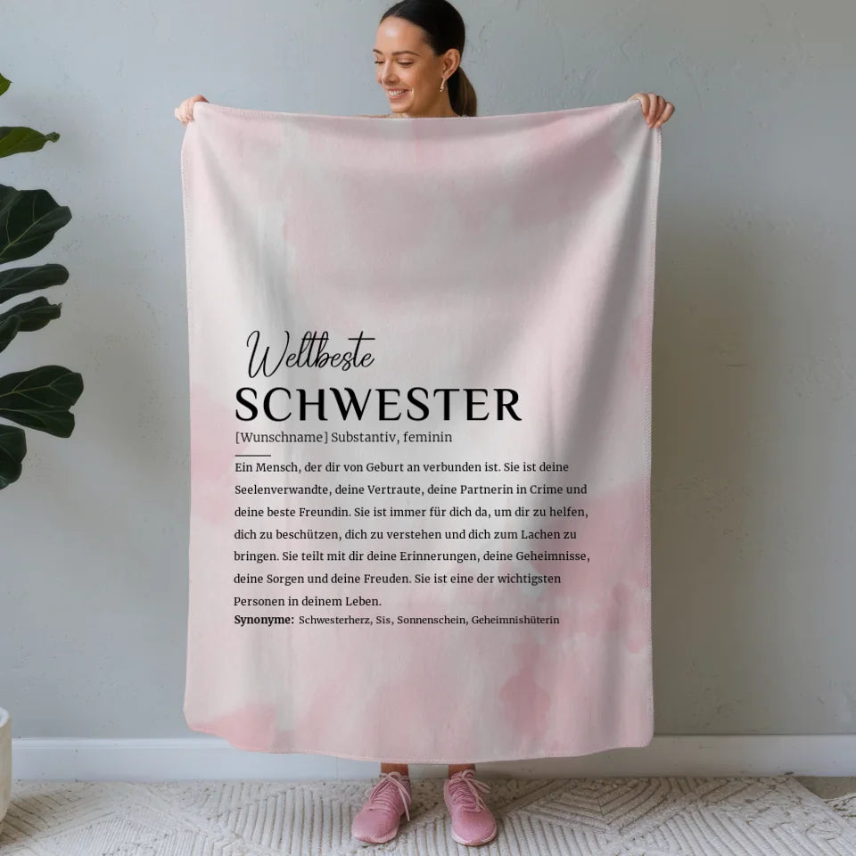 Bestelle noch heute die personalisierte Decke Definition Schwester Rosa Aquarell mit Name und mache deiner Schwester ein unvergessliches Geschenk, das sie lieben wird!