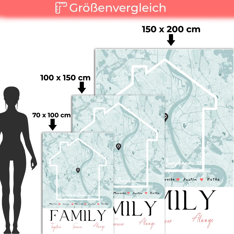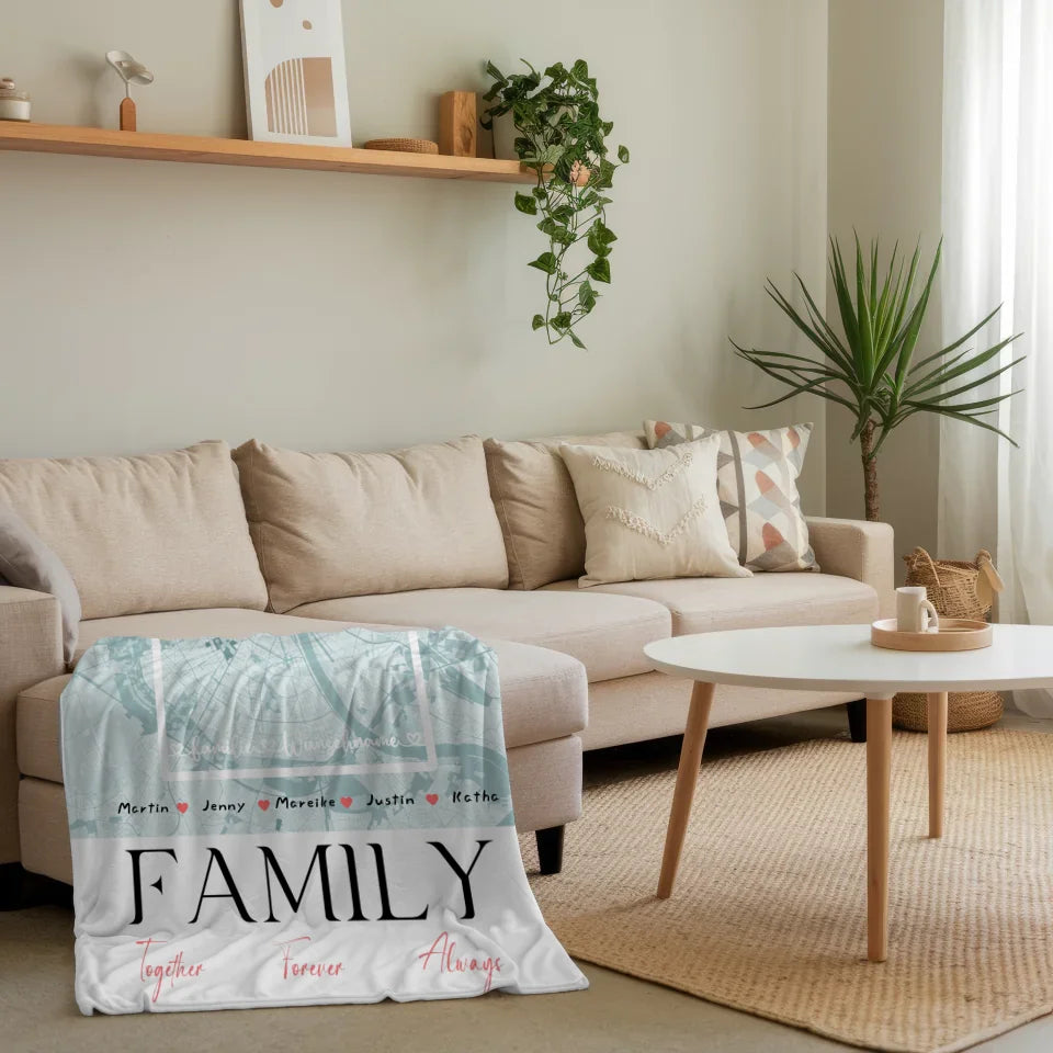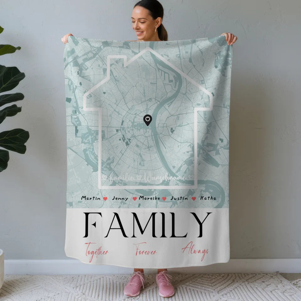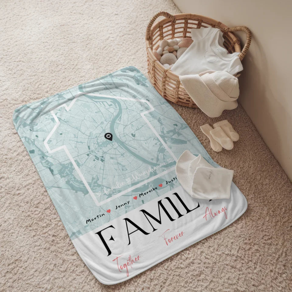 Personalisierte Decke Familie mit Stadtkarte Family Together Nachname