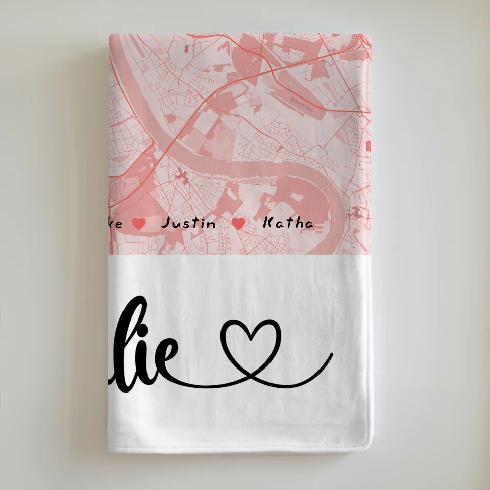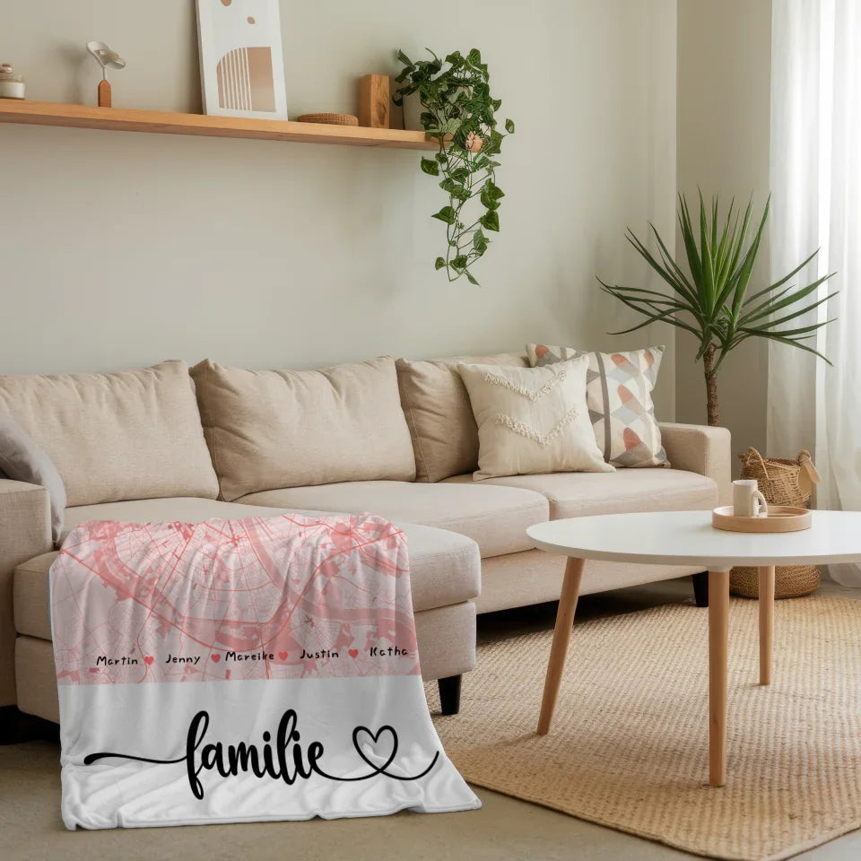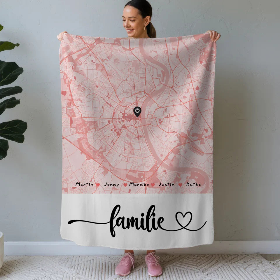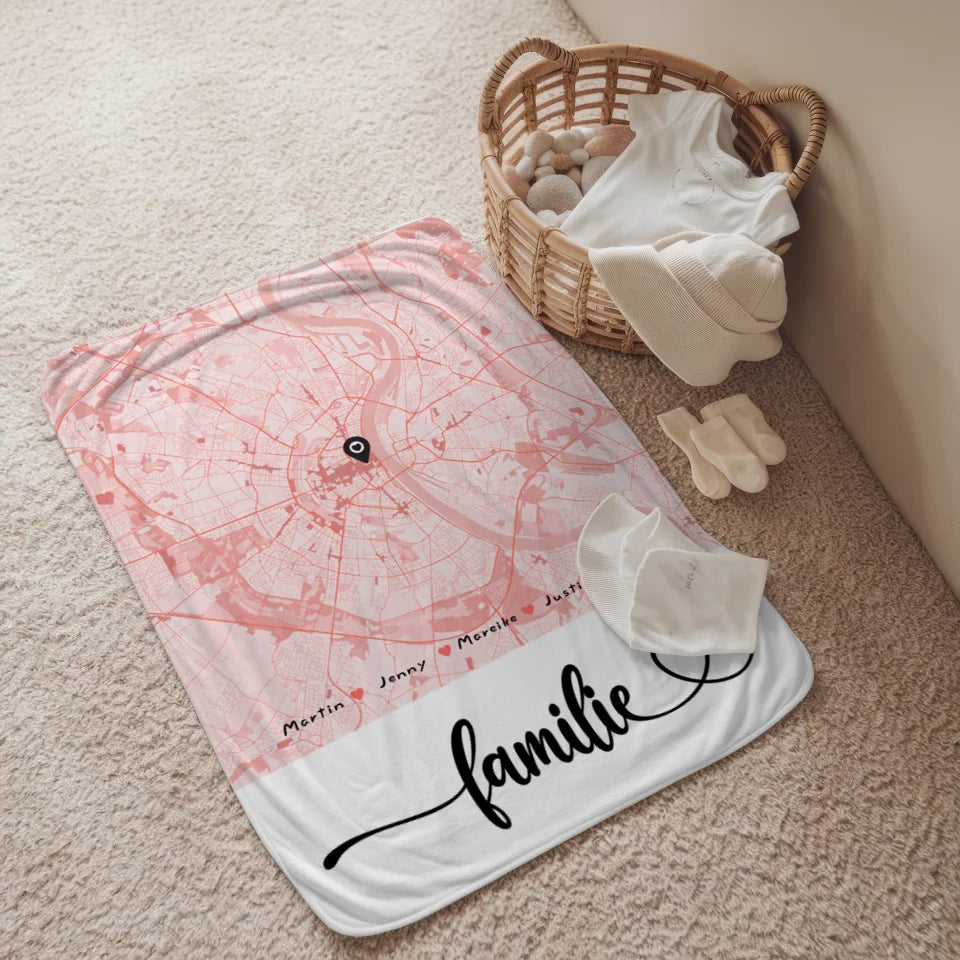 Personalisierte Decke Familie Stadtkarte mit Nachname