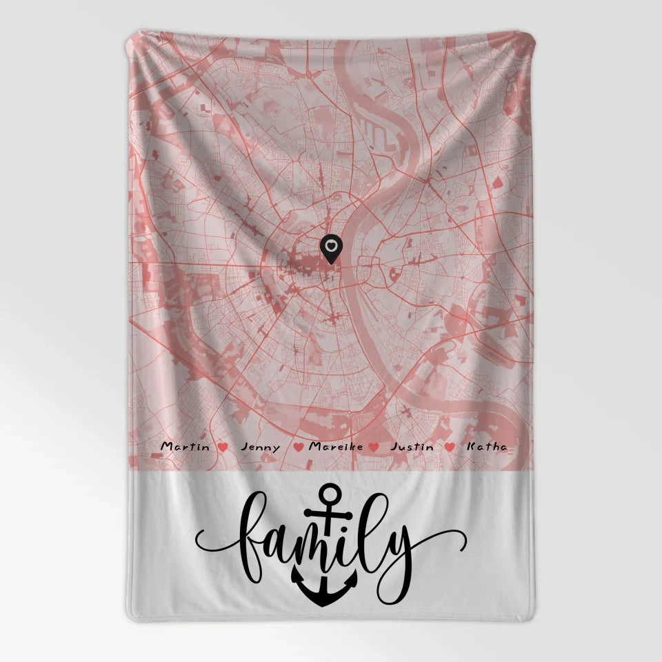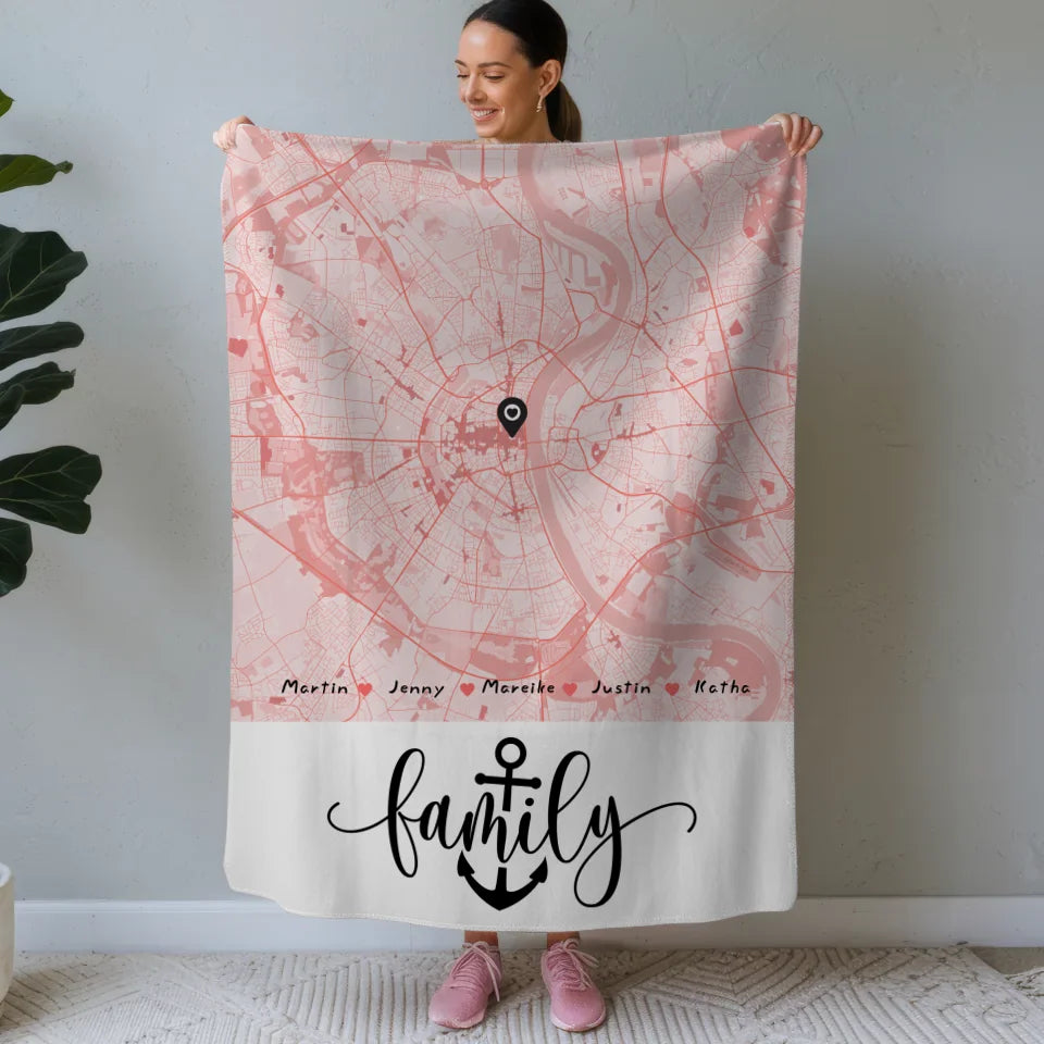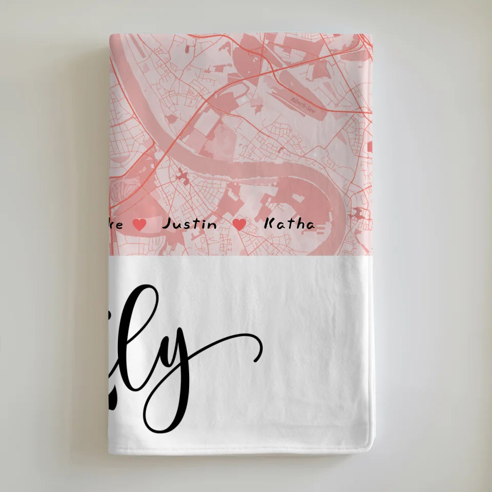 Personalisierte Decke Familie Stadtkarte mit Nachname für besondere Momente