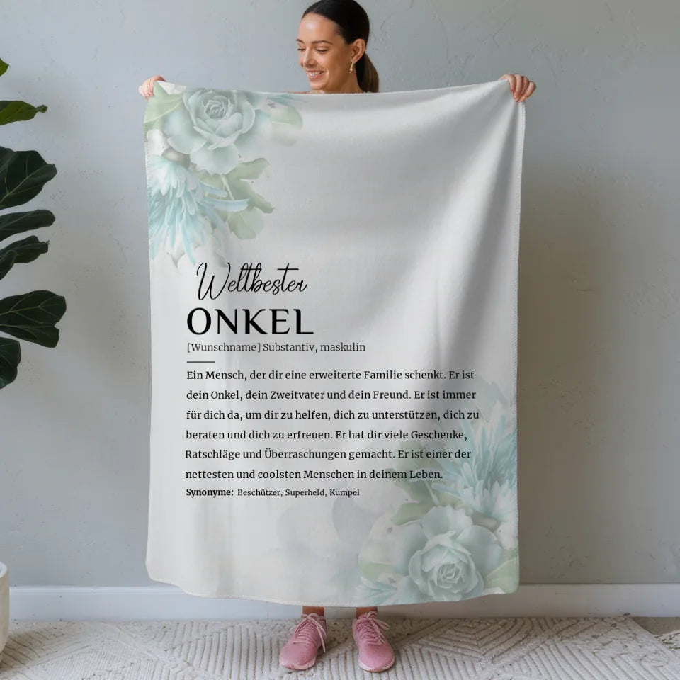Entdecke die personalisierte Decke Floral Blau Definition Onkel mit Name
